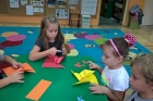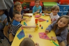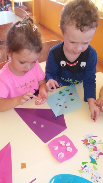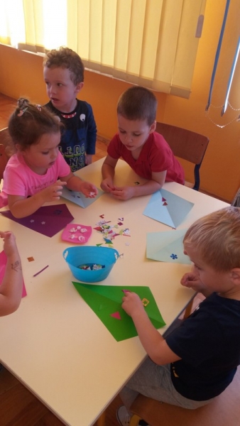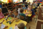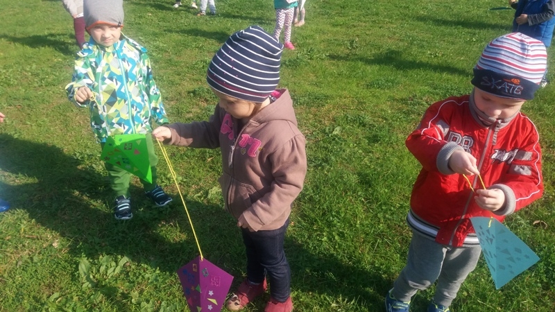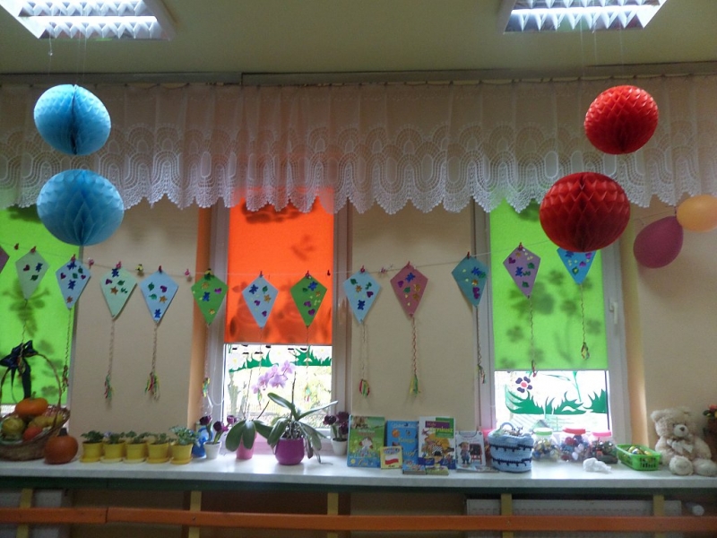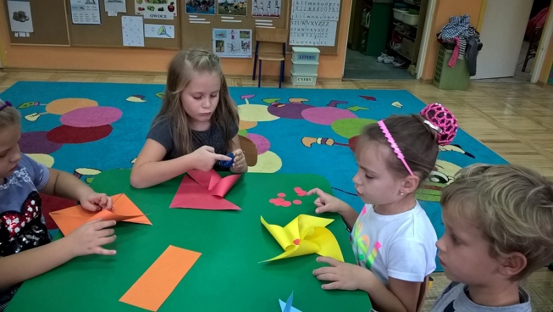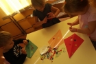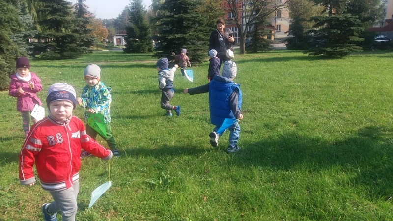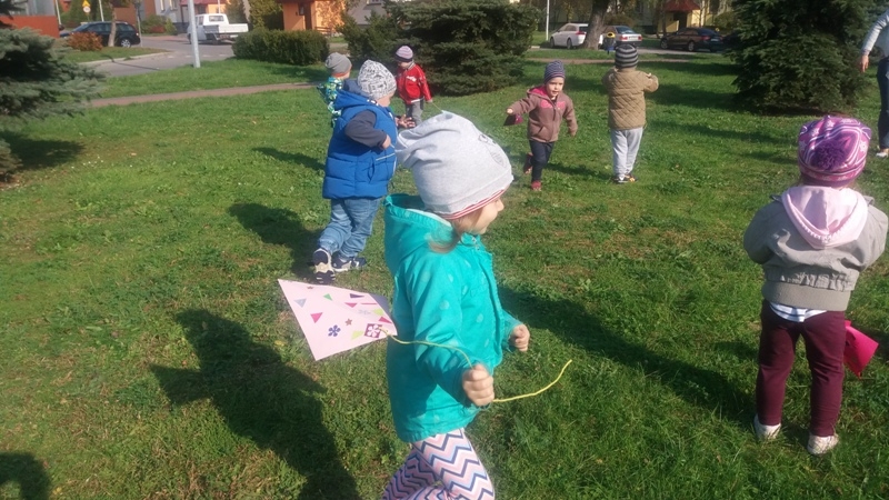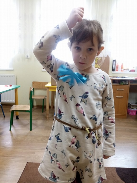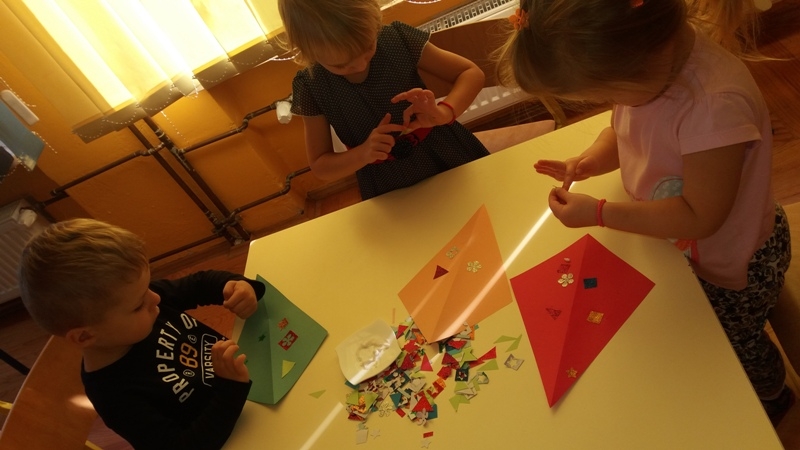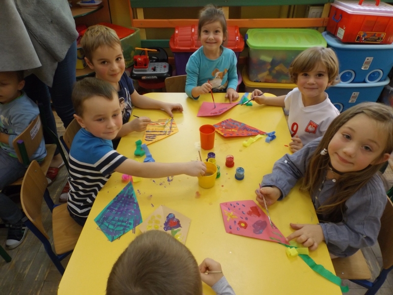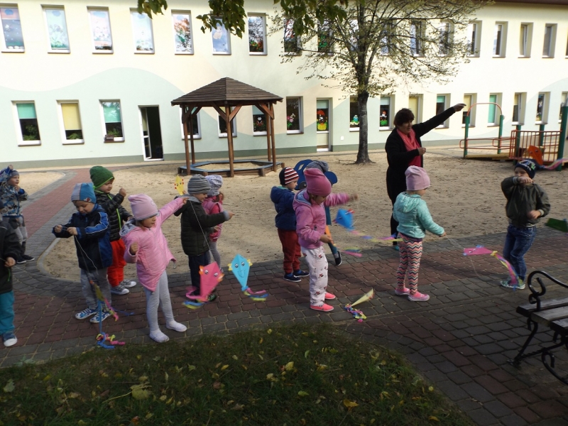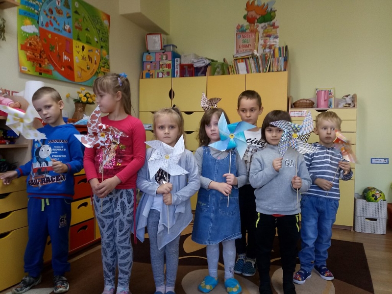 Po zdobyciu wiedzy na temat powietrza i przeprowadzeniu doświadczeń nadszedł czas na wykonanie pracy plastycznej. Z różnorodnych materiałów powstały piękne i kolorowe latawce oraz wiatraczki. Zanim wzbogaciły one przedszkolną galerię prac, dzieci zabrały wiatraczki i latawce do ogrodu przedszkolnego, aby sprawdzić jak podmuch wiatru wprawia je w ruch.