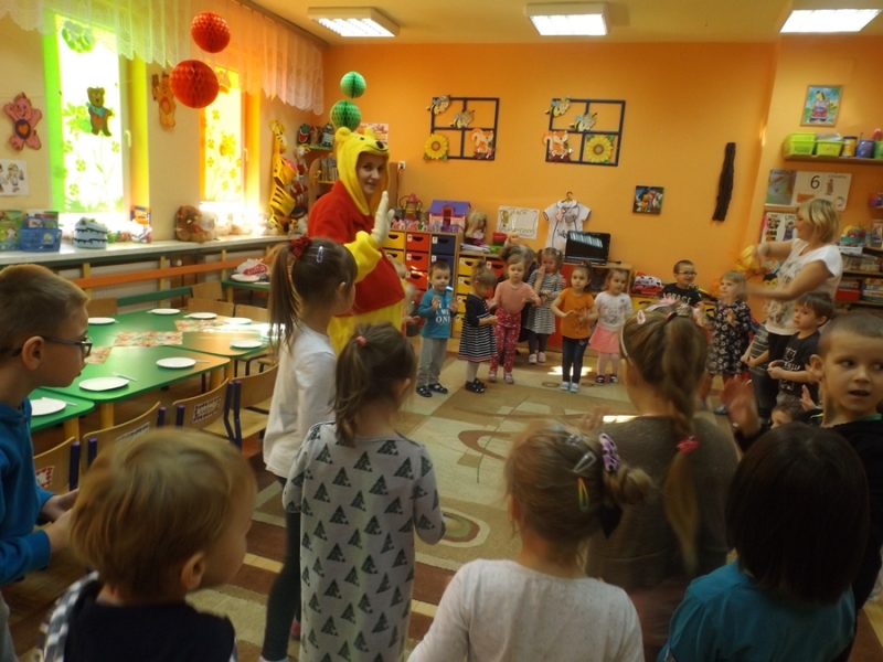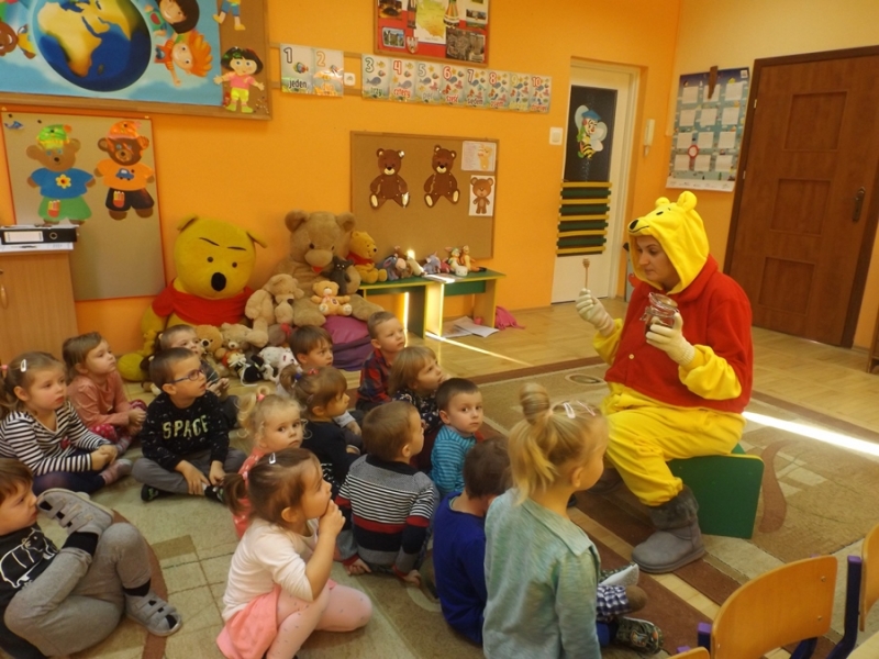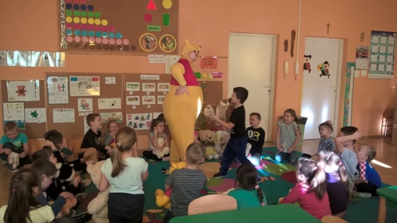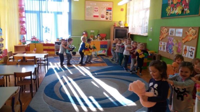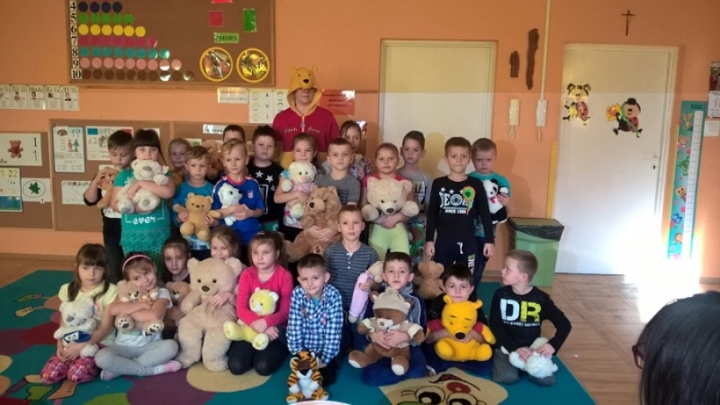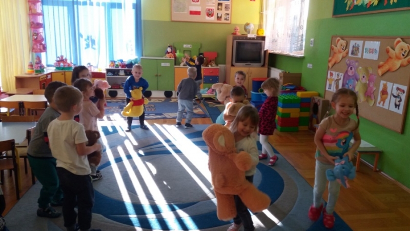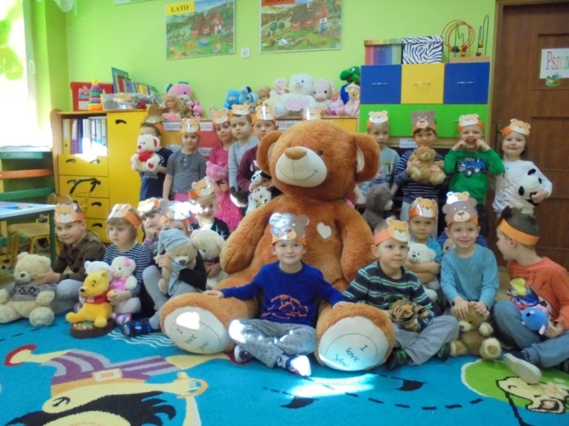 Dzieci zaprosiły tego dnia do przedszkola swoje ulubione pluszowe misie, a całe przedszkole zamieniło się w misiową krainę. Były misie małe i duże, kolorowe, puchate i mięciutkie, a każdy z nich był na swój sposób wyjątkowy. Z wielkim zaangażowaniem dzieci opowiadały o swoich ulubieńcach, podkreślając wyjątkowość przyniesionych przez siebie pluszaków. W tym dniu, na dzieci czekało wiele atrakcji. Przedszkolaki poznały historię święta. Miały także okazję poznać i przypomnieć sobie znane misie z bajek zarówno tych trochę starszych i jak trochę nowszych. Wśród bajkowych bohaterów znalazł się między innymi: Kubuś Puchatek, Miś Colargol, Miś Yogi czy Miś Uszatek. W tym dniu nie zabrakło również misiowych zabaw, tańców i piosenek.