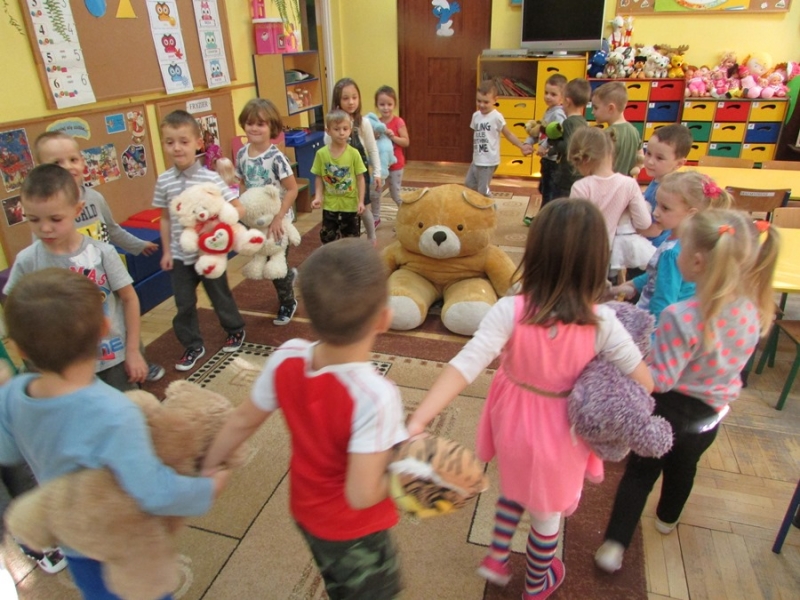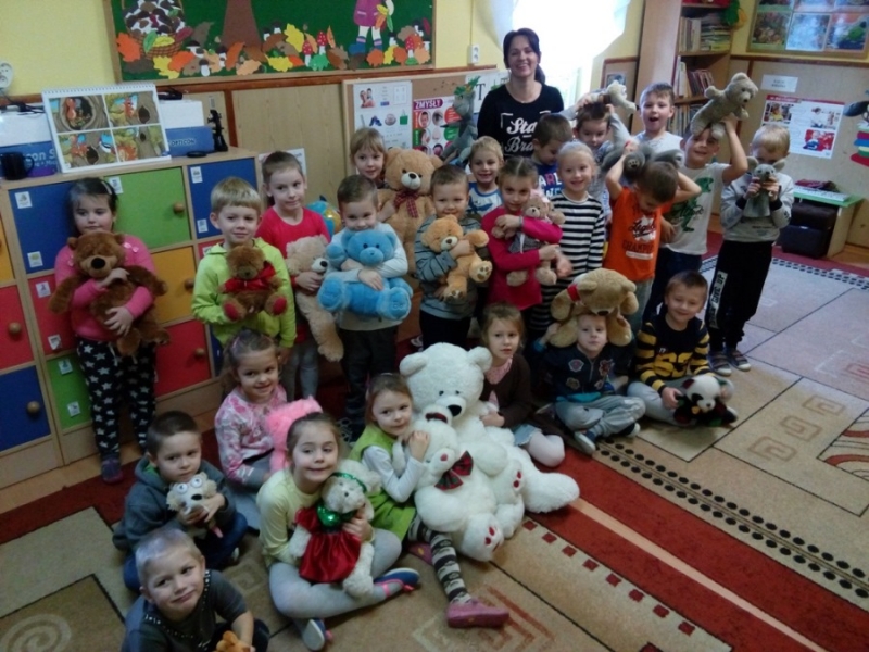 Wśród różnorodnych zabawek uwielbianych przez dzieci na całym świecie, szczególne miejsce bez wątpienia zajmują pluszowe misie. Skradają one serce niejednego dziecka i pełnią ważna rolę w życiu każdego z nich. Pluszowy miś to niejednokrotnie towarzysz zabaw, pocieszyciel czy przytulanka ułatwiająca zasypianie. Ich święto obchodzone 25 listopada to data na trwałe zapisana w tradycji naszego przedszkola. O święcie swoich milusińskich, co roku pamiętają przedszkolaki. Z tej też okazji w dniu 24 listopada wszystkie dzieci z naszego przedszkola uroczyście obchodziły Światowy Dzień Pluszowego Misia.