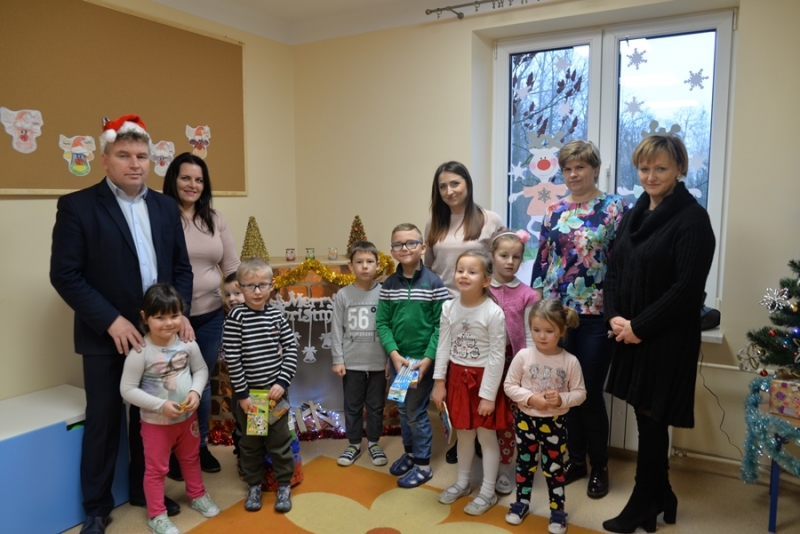 Jak co roku Burmistrz Miasta i Gminy – Pan Jacek Tarnowski odwiedził także najmłodsze pociechy w Zrębinie pomagając Św. Mikołajowi w rozdaniu maluchom słodkich podarunków i edukacyjnych zestawów razem ze skarbnik – Małgorzatą Żugaj i Radną Rady Miejskiej – Anną Śmistek. Ogromna radość i wdzięczny uśmiech to największa zapłata od najmniejszych pociech.
