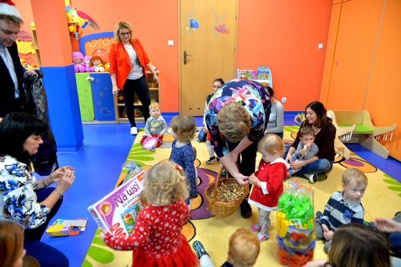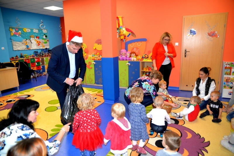 6 grudnia od samego rana w przedszkolach, ale i w połanieckim żłobku panowała wyjątkowa atmosfera. Przychodzące dzieci witał Mikołaj. Na salach zabłysnęły światełka. A to był dopiero początek atrakcji jakie w tym dniu czekały na dzieci. W czasie odpoczynku w żłobku pojawił się Burmistrz w asyście skarbnik, którzy przynieśli ciężki worek z prezentami. A w nim same zabawki i gry pomocne w rozwoju dzieci. Uśmiech dzieci, które z zaciekawieniem przyjmowały kolejne prezenty i słodkości był nieprzeceniony.