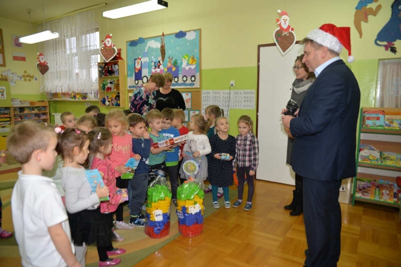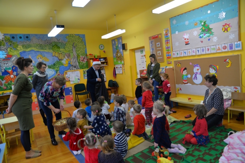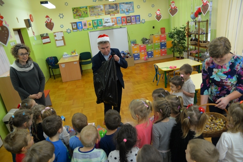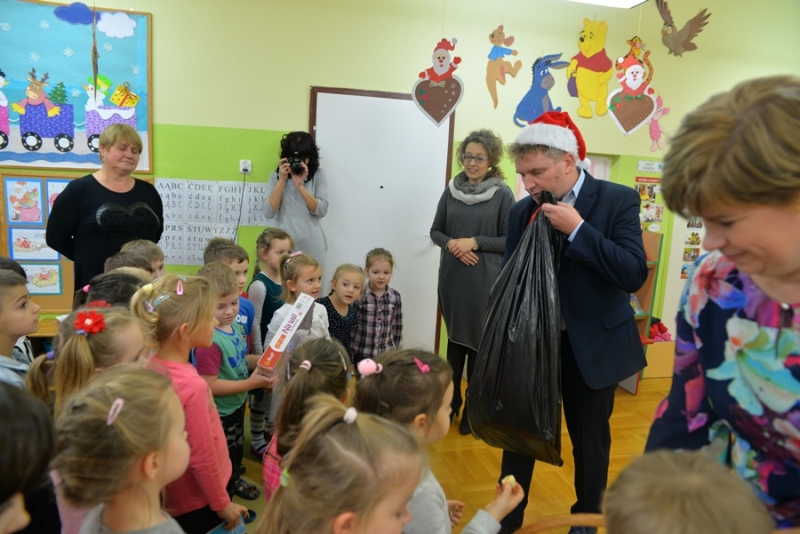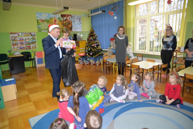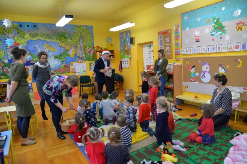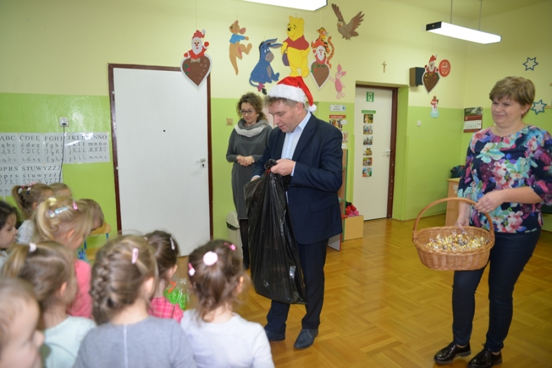 6 grudnia św. Mikołaj dotarł również do maluchów z Przedszkola na ul. Żapniowskiej. To nie był jedyny gość tego dnia w placówce – bo z workiem pełnym prezentów pojawił się również burmistrz i skarbnik gminy, aby każdego malucha poczęstować słodkościami, złożyć życzenia i wręczyć pomoce dydaktyczne dla każdej grupy w placówce. Dzieci zaprezentowały Gościom wierszyki, zaśpiewały przygotowane piosenki, które bardzo się podobały, a na koniec zapraszały do wspólnych zabaw i tańców.