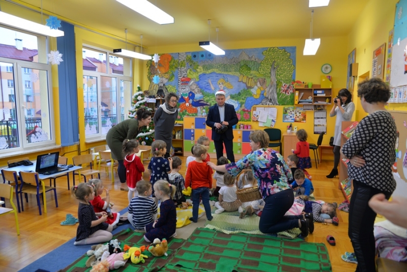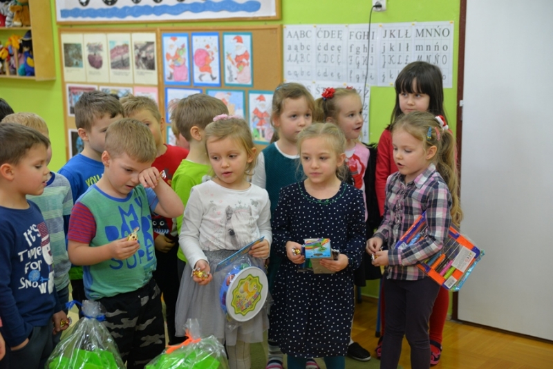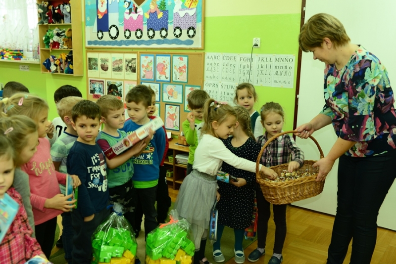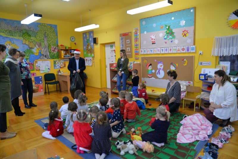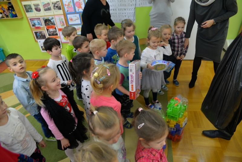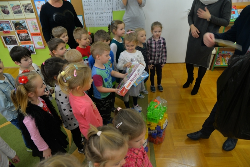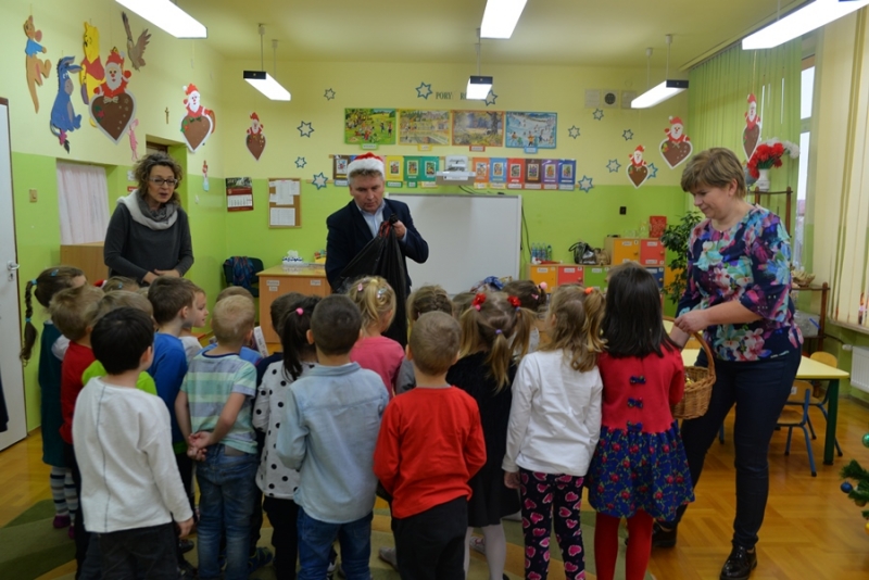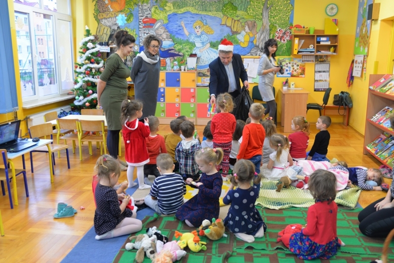 6 grudnia św. Mikołaj dotarł również do maluchów z Przedszkola na ul. Żapniowskiej. To nie był jedyny gość tego dnia w placówce – bo z workiem pełnym prezentów pojawił się również burmistrz i skarbnik gminy, aby każdego malucha poczęstować słodkościami, złożyć życzenia i wręczyć pomoce dydaktyczne dla każdej grupy w placówce. Dzieci zaprezentowały Gościom wierszyki, zaśpiewały przygotowane piosenki, które bardzo się podobały, a na koniec zapraszały do wspólnych zabaw i tańców.