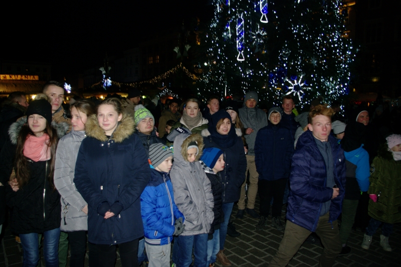 Na magicznie oświetlonym rynku, próbowaliśmy wyczarować śnieg - i proszę ... dziś rano w Połańcu prószy białe z nieba. To chyba serio nasze zaklęcia zadziałały ...