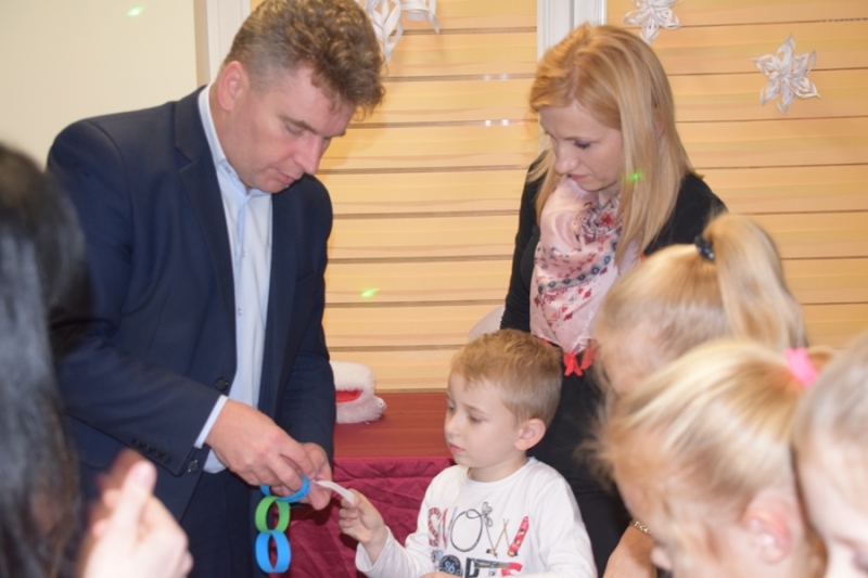 Tą wesołą piosenką uczestnicy zajęć w Świetlicy Środowiskowej oraz podopieczni Ośrodka Sportu i Rekreacji w Połańcu powitali oczekiwanego przez wszystkich Mikołaja. Dzień 6 grudnia obfitował u nas we wrażenia, zabawę i prezenty. Uroczyste spotkanie uświetnili swą obecnością: Pan Jacek Tarnowski, Burmistrz Miasta i Gminy Połaniec, Pani Skarbnik, Małgorzata Żugaj, Pani Karolina Koper-Adamczak, Dyrektor Ośrodka Sportu i Rekreacji oraz przybyli rodzice. Do wprowadzenia nas wszystkich w bożonarodzeniowy nastrój przyczyniło się wspólne wykonanie pracy plastycznej – kolorowego łańcucha, który zawisł na naszej choince. Każdy z obecnych dołożył swoje ogniwo, dlatego jest on dla nas symbolem jedności, współpracy i podejmowania wspólnych działań. Gdy choinka była już udekorowana, rozległ się dźwięk dzwoneczka – zbliżał się do nas Mikołaj w asyście Śnieżynki. Przedstawicielki wszystkich dzieci odprowadziły go na honorowe miejsce. „Czy byliście grzeczni?” – to oczywiście zainteresowało naszego gościa. Okazało się, że uczestnicy mikołajkowego spotkania zasłużyli na prezenty w tym roku. W przyjemnej i radosnej atmosferze nastąpiło ich rozdawanie. A były to same pyszności! Każde dziecko miało możliwość porozmawiać z Mikołajem i zrobić sobie z nim pamiątkowe zdjęcie. Po słodkim poczęstunku nadszedł czas na pożegnanie Mikołaja, ale zabawa trwała. Humor dopisywał wszystkim i nikt nie myślał o powrocie do domu. Ten dzień na pewno pozostanie w naszej pamięci na bardzo, bardzo długo:)
