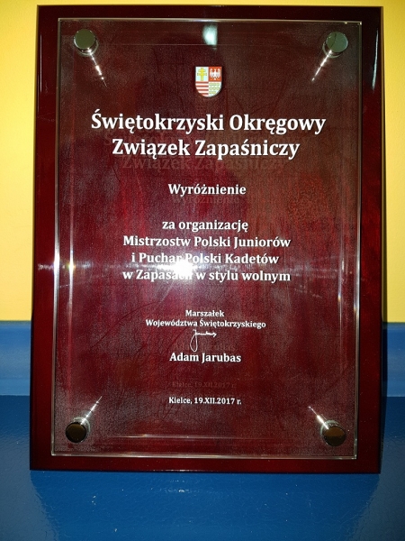 Cieszymy się z ich wspaniałych osiągnieć- powiedział trener Tadeusz Szkwarek -gratulujemy i życzymy dalszych sukcesów. Dodał również, że na ręce trenera Wiktora Skrobacza jako organizatora, zostało wręczone wyróżnienie dla Świętokrzyskiego Okręgowego Związku Zapaśniczego za organizację Mistrzostw Polski Juniorów i Pucharu Polski Kadetów w Zapasach w stylu wolnym w STASZOWIE. Była to niewątpliwie ogromna promocja naszego regionu.