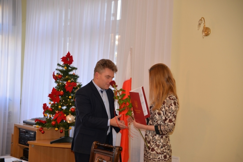 Po odśpiewaniu Hymnu Państwowego i złożeniu ślubowania, panie odebrały akt mianowania i symboliczną różę z rąk Burmistrza – Jacka Tarnowskiego oraz moc życzeń i gratulacji od dyrekcji. Szczególne gratulacje dla dydaktyków złożyli: Burmistrz- Jacek Tarnowski, Skarbnik Gminy - Małgorzata Żugaj, Przewodnicząca Komisji Oświaty, Kultury i Sportu- Małgorzata Dalmata – Konwicka, kierownik SCUW – Agnieszka Trela oraz dyrektorzy placówek oświatowych. W swoich przemówieniach podkreślali, że praca nauczyciela jest szczególnym powołaniem do czynnego towarzyszenia rozwojowi drugiego człowieka. Jest to wielkie wyzwanie - niezwykle trudne i odpowiedzialne. Serdeczne gratulacje zdobytego awansu z życzeniami dalszego rozwoju zawodowego i czerpania radości z tej najpiękniejszej profesji, padały z ust każdego przemawiającego.