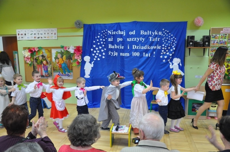Tańcem, wierszem i piosenką dziękowały za dobroć i cierpliwość, opiekę i czas, jaki poświęcają swoim wnuczętom oraz za ogrom bezinteresownej miłości.Wszędzie słychać było gromkie „Sto lat”, które bardzo wzruszało gości. Swoich najbliższych dzieci obdarowaływłasnoręcznie przygotowanymi upominkami. Goście ze wzruszeniem patrzyli na swoje pociechy i wielkimi brawami dziękowali za występy.