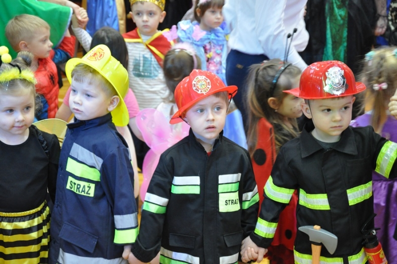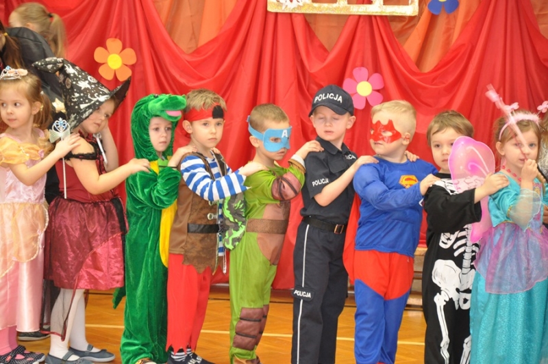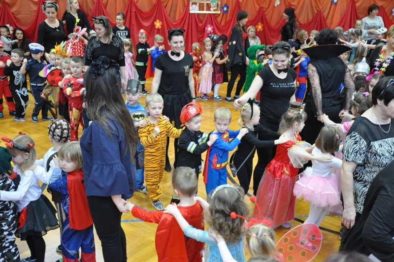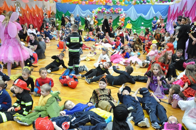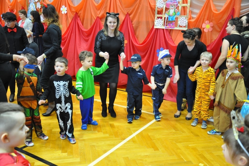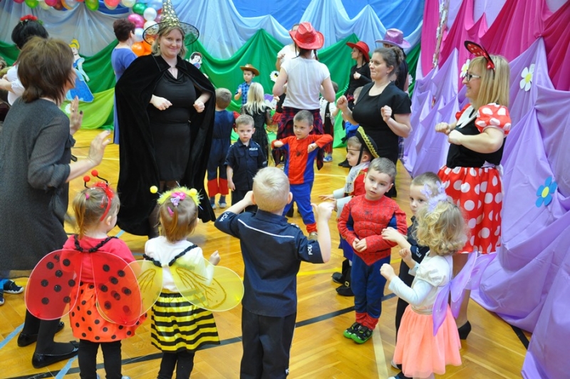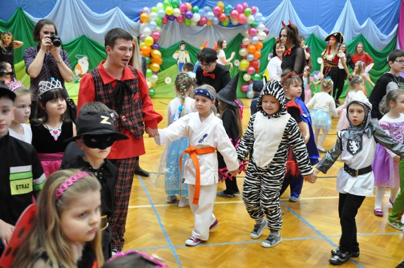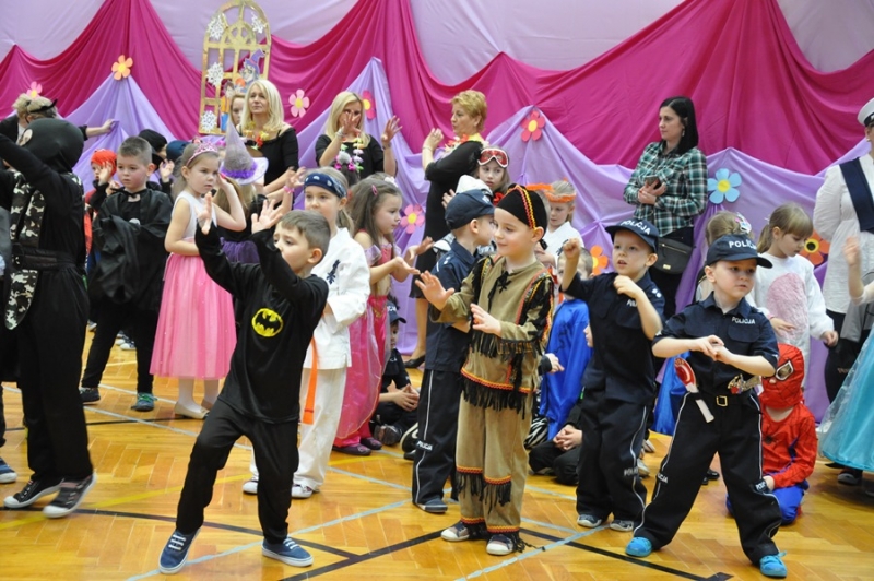 Karnawał to wspaniały czas nie tylko dla dorosłych, ale i dla dzieci. To czas zabawy, tańców i wielkiego ucztowania, parad i balów maskowych. W naszym przedszkolu taki bal odbył się 30 stycznia 2018r. Był to dzień niezwykły, wyczekiwany przez przedszkolaków od wielu tygodni. Dzieci przebrane w różnorakie, kolorowe stroje, bawiły się w rytm muzyki, którą zapewnił nam, prowadzący bal, zespół PATIGO. Podczas wyśmienitej zabawy tanecznej nie zabrakło konkursów i quizów, z którymi nasi wychowankowie radzili sobie wyśmienicie. Radości nie było końca, a to właśnie było głównym celem naszego balu. Dzieci wykazały się pomysłowością w wyborze kreacji balowych a rodzice kreatywnością podczas ich tworzenia czy zdobywania. Księżniczki, rycerze, spidermani, policjanci, żołnierze, pszczółki, smoki, czarownice i inne postaci bajkowe na dwie godziny opanowały salę gimnastyczną połanieckiego gimnazjum. Tańcom nie było końca, a uśmiechy z twarzy naszych milusińskich nie znikały, mimo zmęczenia. Znalazł się również czas na chwilę relaksu przy poczęstunku oraz wspólne zdjęcia. W trakcie balu pojawili się również rodzice naszych podopiecznych i chętnie włączyli się do wspólnej zabawy. Pod koniec balu Pani dyrektor Anna Kaniszewska podziękowała wszystkim za przybycie i wyśmienitą zabawę. Kiedy czas zabawy dobiegł końca, dzieci z żalem opuszczały salę balową.