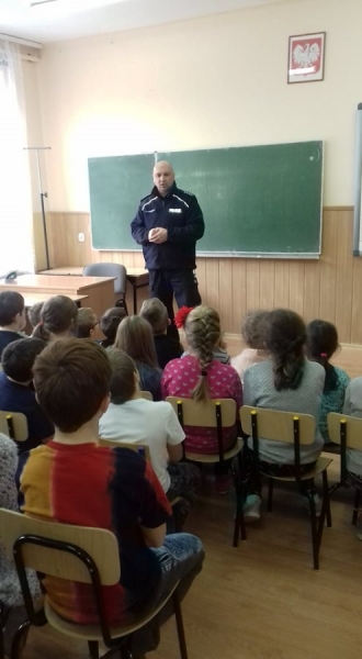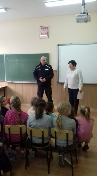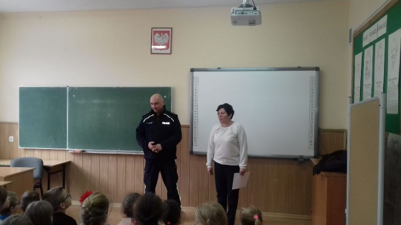 Funkcjonariusz przypomniał o zagrożeniach czyhających na dzieci w trakcie ferii zimowych. Omówił z dziećmi zasady bezpieczeństwa podczas uprawiania sportów zimowych i zabaw na świeżym powietrzu. Przestrzegał przed ślizganiem się na skutych lodem jeziorach, stawach i rzekach, a także przed zjeżdżaniem z górek znajdujących się blisko ruchliwych ulic. Uczniowie otrzymali wskazówki jak bezpiecznie bawić się na śniegu i jak zachować się na kuligu. Natomiast dzieci, które pozostają w domach zostały poinformowane o konieczności zamykania drzwi od wewnątrz i o zakazie wpuszczania osób nieznajomych.