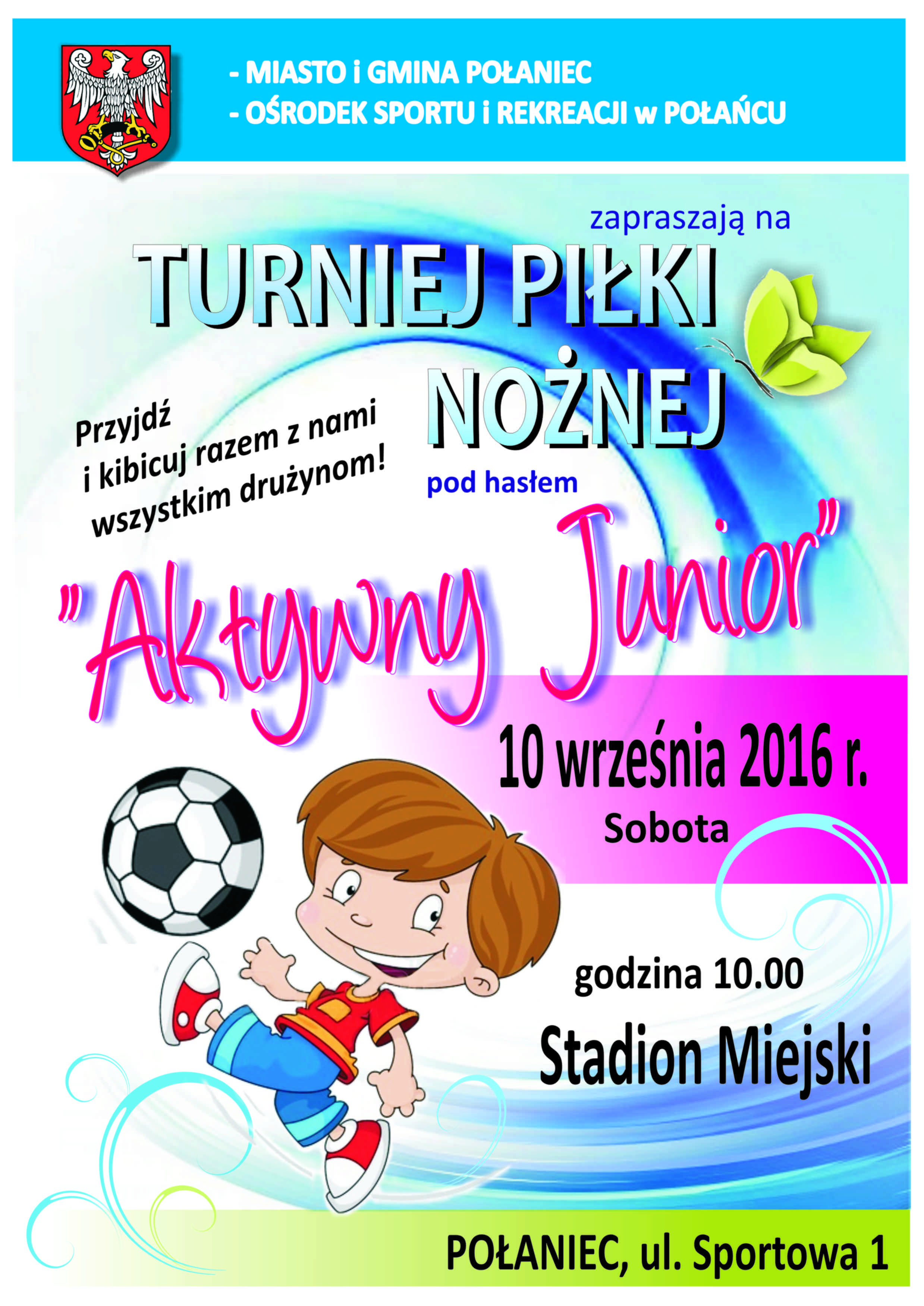 Dnia 10 września na terenie Stadionu Miejskiego przy ul. Sportowej 1 w Połańcu odbyły się zawody piłki nożnej o Puchar Burmistrza Miasta i Gminy Połaniec oraz piknik rodzinny pod hasłem „Aktywny Junior”. Organizatorami byli: Miasto i Gmina Połaniec oraz Ośrodek Sportu i Rekreacji w Połańcu. Celem turnieju było zaprezentowanie przez dzieci swoich piłkarskich umiejętności, sportowa rywalizacja, propagowanie zdrowego stylu życia, sportu oraz integracja dzieci, młodzieży i ich rodziców.