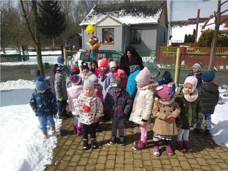 oraz piosenką powitały tak długo oczekiwaną Wiosenkę. Byli i tacy co z taką piosenką na ustach wyruszyły w poszukiwaniu nowej pory roku na świeżym powietrzu. Wraz ze złą Marzanną powędrowały na most, ale dbając o czyste środowisko Marzanna wylądowała w koszu na śmieci a nie w rzece Czarnej.