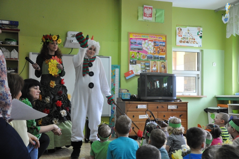 21 marca dzieci z Przedszkola Publicznego w Połańcu uroczyście powitały nową porę roku – Wiosnę. Aby przyspieszyć jej nadejście przedszkolaki przygotowały się już od dawna: założyły zielony ogródek w każdej przedszkolnej sali, w którym siały, sadziły roślinki i obserwowały ich wzrost. W pierwszy dzień Wiosny dzieci przybyły do przedszkola w radosnych nastrojach, ubrane w piękne kolorowe stroje. Każdy przedszkolak miał przygotowane wiosenne emblematy , które miały zaakcentować nową porę roku. Wszystkie przedszkolaki ze swoimi paniami oraz Panią Dyrektor zebrały się w jednej przedszkolnej sali aby wspólnie pożegnać Śniegowego Bałwanka dla którego zaśpiewały piosenkę „ Do widzenia Panie Bałwanie”.