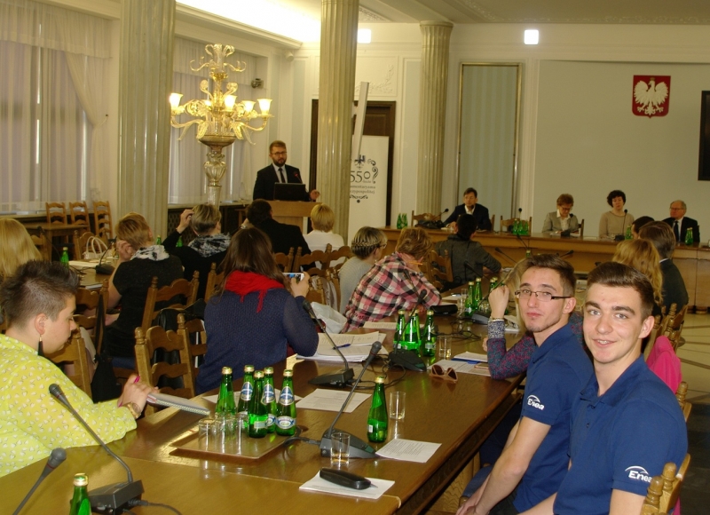 Sejm RP, Sala Kolumnowa, 19.04.2018. Ogólnopolska Konferencja: „Pomysłowe dzieci - Kreatywni uczniowie - Innowacyjni studenci” - Maciek Kowalski (Technikum Elektroniczne) i Kuba Zyngier (absolwent LO, AHG Kraków).