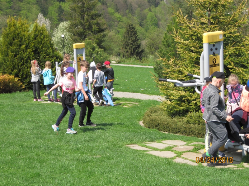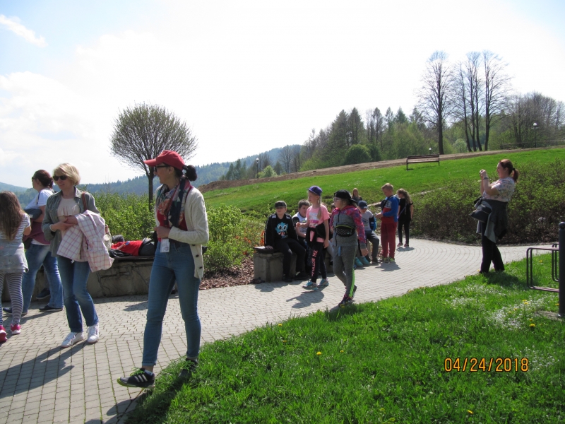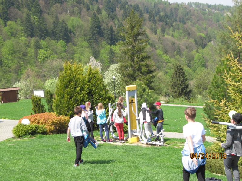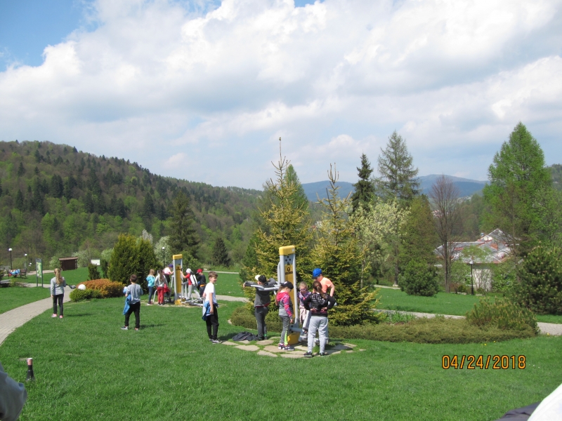 Podczas pobytu spacerowaliśmy po krynickim deptaku, pięknym Parku Zdrojowym, oglądaliśmy ciekawe fontanny, kupowaliśmy także pamiątki. Oczywiście głównym punktem pobytu w Krynicy była wizyta w pełnej zieleni Pijalni Głównej wód mineralnych. Degustowaliśmy i zaopatrzyliśmy się w wodę zdrojową dla naszych rodzin. Odwiedziliśmy najbardziej znane miejscowości Beskidu Sądeckiego: Muszynę, Powroźnik, Kamianną, Złockie, Stary Sącz. Znaleźliśmy się blisko nieskazitelnej przyrody w najbardziej malowniczych zakątkach regionu. Uzdrowiskowy mikroklimat, relaksująca bliskość lasów i gór, źródlana - krystalicznie czysta woda. Dowiedzieliśmy się wiele o życiu i pracy ludzi Sądecczyzny, poznaliśmy cechy krajobrazu górskiego, nazwy szczytów, roślin, zabytków przyrody. Nie obyło się bez dyskoteki, konkursów i zabaw.