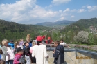 Z radością udaliśmy się do Krynicy Zdrój – perły polskich uzdrowisk o szczególnych walorach klimatycznych, leczniczych, turystycznych, rekreacyjnych i sportowych, położonej w Beskidzie Sądeckim. Swoją sławę Krynica zawdzięcza dużej ilości źródeł i pijalni wód mineralnych. Miejscem zakwaterowania był Ośrodek Sanatoryjno- Wczasowy „Hajduczek”, położony u podnóża Góry Parkowej z dala od zgiełku i hałasu, z przepięknym widokiem na górski świat i pobliskie lasy, gdzie z okien dojrzeć można było zielone drzewa i usłyszeć ptasi śpiew. W ośrodku czekały na nas nie tylko ładne pokoje z łazienkami, ale przede wszystkim smaczne posiłki i życzliwy personel. Pogoda również nam sprzyjała.