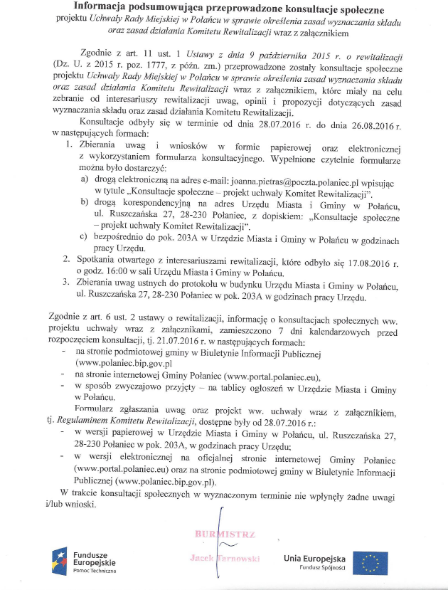 W dniu 2 września 2016 r. w Urzędzie Miasta i Gminy Połaniec została zawarta umowa pomiędzy Miastem i Gminą Połaniec reprezentowaną przez Burmistrza – Jacka Tarnowskiego a wykonawcą zadania firmą Zakład Produkcyjno-Usługowo-Handlowy „Stabil” z siedzibą w Połańcu, ul. Witosa 4/1, reprezentowaną przez Henryka Bednarskiego. Przedmiotowa umowa dotyczy realizacji zadania pod nazwą „Remont drogi gminnej nr 366142T w msc. Ruszcza od km 0+021 do km 1+011,16 polegający na budowie chodnika”.