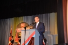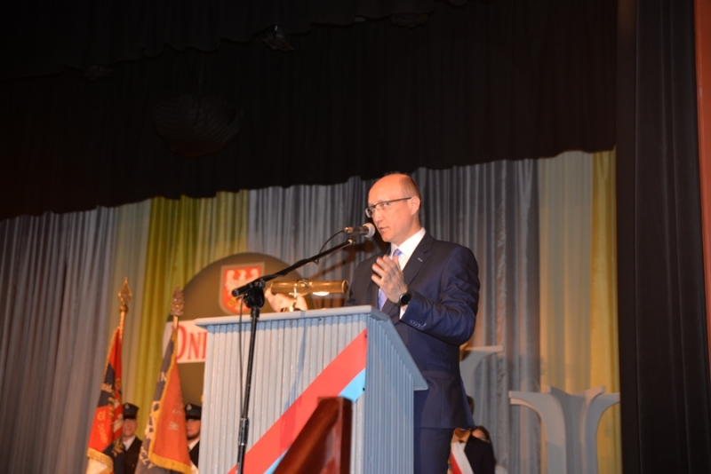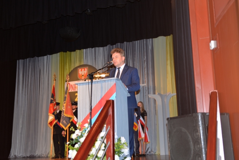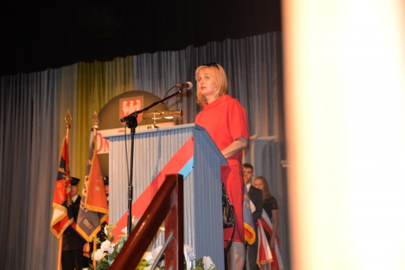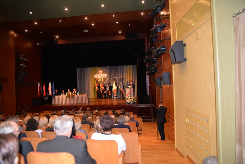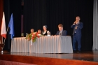 Następnie głos zabrała Pani Małgorzata Dalmata – Konwicka. Celem jej wystąpienia miało być przybliżenie historii Połańca. Powiedzieć, że cel ten został zrealizowany to zdecydowanie za mało. Podczas przemowy Pani Małgorzaty na sali nie było słychać najmniejszego szmeru. Pełne pasji i zaangażowania wystąpienie pozwoliło przenieść się w czasy, o których prelegentka opowiadała. Można pokusić się o stwierdzenie, że nawet zatwardziała wyobraźnia została pobudzona, oczyma wyobraźni widziało się wszystkie przeszłe wydarzenia. Bogaty i ciekawy referat był nie tylko chwilą wspomnień i możliwością przeniesienia się w dawne czasy, ale również źródłem ogromnej wiedzy dla uczestników uroczystości. Jak mogliśmy dowiedzieć się z wygłoszonego referatu Połaniec był grodem warownym położonym w zakolu rzeki Czarnej, a jego początki odnaleźć można w Państwie Wiślan. Korzystne położenie naszego grodu wpływało na szybki jego rozwój, natomiast układ przestrzenny Połańca przetrwał do dnia dzisiejszego. Historia naszego miasta nie zawsze jednak malowała się w kolorowych barwach: rozbicie dzielnicowe, najazd tatarów, dwukrotne spalenie grodu pokazuje jak ciężką drogę musiało przejść nasze miasto. Prelegentka w swym referacie nie zapomniała także o naszym połanieckim bohaterze Tadeuszu Kościuszce. „...na przednówku Kościuszko w Połańcu zagościł (...). W widłach Wisły i Czarnej Pan Naczelnik rozlokował wojsko, czuł się u nas jak u siebie, swojsko(…). Miejsca starczyło dla strudzonych żołnierzy, piechoty, kawalerii, artylerii, a i konia wypasać gdzie było. Rozejrzał się bacznie Pan Kościuszko wokół, a nad jego głową poszybował sokół – to na dobrą wróżbę, pomyślał Naczelnik. Tak właśnie Pani Małgorzata opisała przybycie T. Kościuszki na ziemię połaniecką. „Zerwał się wiatr chłodny choć majowy, chłopom czapki na głowach tańcowały, a babom furgotały kiecki – Pan Naczelnik ogłasza Uniwersał połaniecki wolność dając tym co jej pragnęli tak jak nędzarz kromki (…). W taki natomiast barwny sposób ukazany został moment wydania na naszej ziemi Uniwersału połanieckiego dającego chłopom wolność osobistą. Uwadze słuchaczy nie powinien umknąć fakt, że Połaniec to miasto bogate nie tylko w piękną historię, ale w wiele zabytków, które tę historię opowiadają. Jak bowiem powiedziała Pani Małgorzata w swym referacie: „Człowiecze – czyś Ty stary, czyś Ty młody albo zupełnie malutki, przez matkę za rękę prowadzony. Czyś Ty mieszkaniec tego miasta, gminy, czy turysta, zatrzymaj się, choćby na chwilę – westchnij, posłuchaj jak bije serce historii – Twojej historii”. Kolejnym zabierającym głos był Arkadiusz Bąk – Przewodniczący Sejmiku Województwa Świętokrzyskiego. Na wstępie w imieniu własnym, jak i władz samorządu województwa świętokrzyskiego pogratulował on pięknego kultywowania tradycji nie tylko Połańca, ale również całej Rzeczypospolitej. Zwrócił on uwagę na to co Połaniec wnosi do województwa świętokrzyskiego – przede wszystkim umiejętność pokazania historii w sposób ciekawy i zachęcający do jej pogłębiania. Przewodniczący zaznaczył również, że Uniwersał połaniecki to tak naprawdę pierwszy dokument, który dawał chłopstwu wolność osobistą i należy pamiętać, że został on uchwalony tu, na ziemi połanieckiej. Na sam koniec swojego wystąpienia przewodniczący zaprosił młodzież połaniecką do Młodzieżowego Sejmiku Województwa - „Pamiętajcie o przeszłości, ale twórzcie przyszłość”. Kolejnym prelegentem był zastępca burmistrza Gminy Opalenica Paweł Jakubowski. Swoje wystąpienie rozpoczął on od podziękowania za zaproszenie i możliwość zobaczenia i zwiedzenia połanieckiej ziemi. Skupił się również na tym, że mamy piękną i żywą historię, o którą dbamy. Z ust burmistrza padło wiele komplementów także dla mieszkańców naszej Gminy. „Mieszkają tu u Państwa wspaniali ludzie” - mogliśmy usłyszeć. Na koniec padły życzenia i zaproszenie do ziemi opalenickiej oraz na ręce Pana Burmistrza i Przewodniczącego Rady Miejskiej złożono symboliczne pamiątki. Warto również zapamiętać, że Opalenica jest miastem pierwszego polskiego motocykla oraz znajduje się tam jedna z największych cukrowni. Na niedzielnych wystąpieniach głos zabrał również Wiceprezes - Marek Ryński z ENEA Elektrownia Połaniec, który po powitaniu zaznaczył, że elektrownia jako największy zakład w województwie świętokrzyskim zawsze wspiera takie inicjatywy. Ponadto, wiceprezes wspomniał również, że w tym roku elektrownia wraca z „Dniem Energetyka” do Połańca. Na zakończenie padły życzenia udanych obchodów. Głos zabrała również Iwona Lisowska z Towarzystwa Kulturalnego im. T. Kościuszki w Szczekocinach. Na wstępie prelegentka złożyła gratulacje Towarzystwu Kościuszkowskiemu w Połańcu oraz zaprosiła wszystkich na „Rajd Kościuszkowski” w czerwcu w okolicach Szczekocin. Okolicznościowe przemówienia zakończył swoim wystąpieniem Burmistrz Miasta i Gminy Połaniec – Jacek Tarnowski. Po przywitaniu wszystkim zgromadzonych nawiązał on do historii, zwłaszcza historii ziemi połanieckiej. Jak powiedział burmistrz naszej Gminy „Patriotyzm” to również dbanie o tradycje i dbanie o polskość. Zaznaczył, że co roku Gmina Połaniec kultywuje tradycje naszego przewodnika Tadeusza Kościuszki. W Połańcu wiele jest miejsc, które związane są z postacią wielkiego naczelnika, m.in. szkoła im. T. Kościuszki, pomnik czy dąb Tadeusz Kościuszki. W swoim wystąpieniu włodarz Gminy Połaniec nawiązał również do konieczności dbania o czyste środowisko. Jak zaznaczył „środowisko naturalne szybko można zepsuć, ale naprawić go szybko już się nie da.” Burmistrz przypomniał również o tym jak ważne jes
