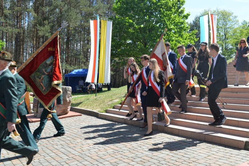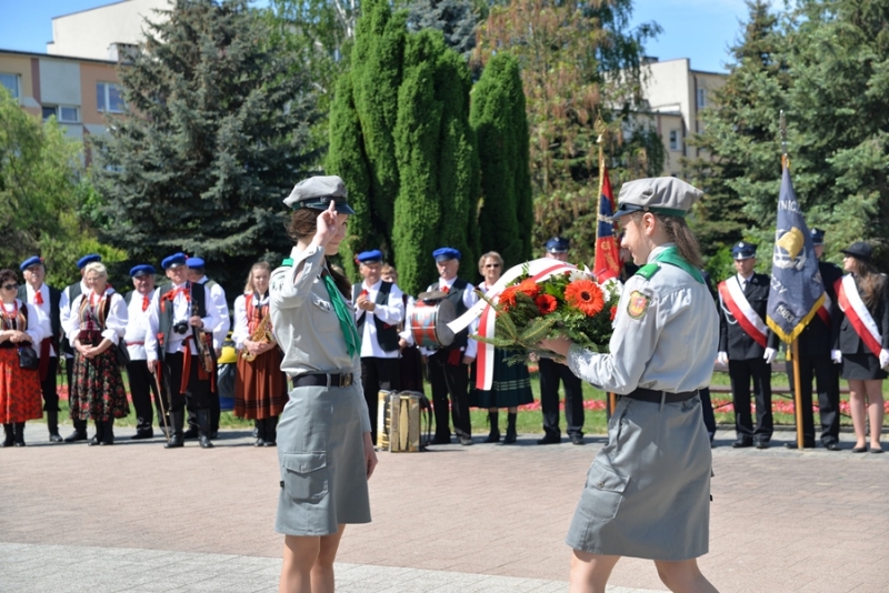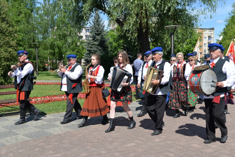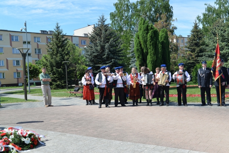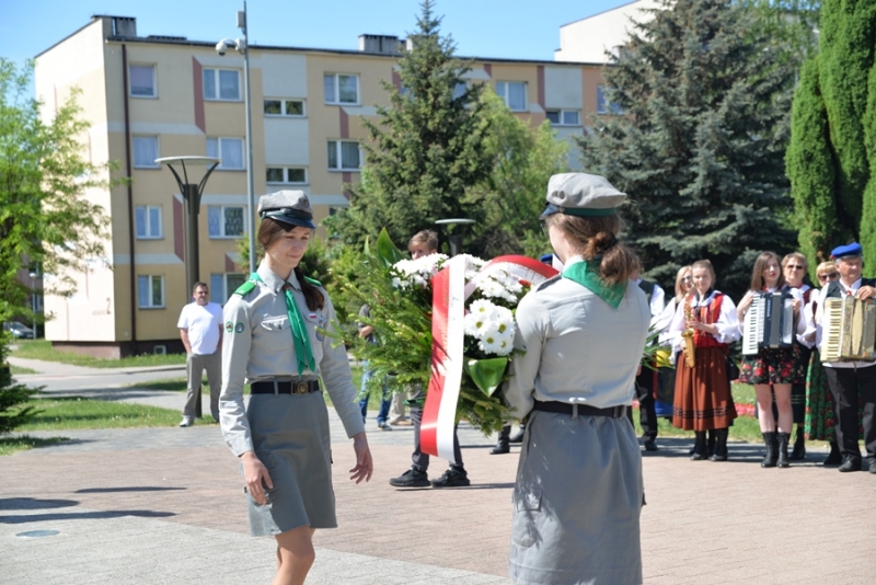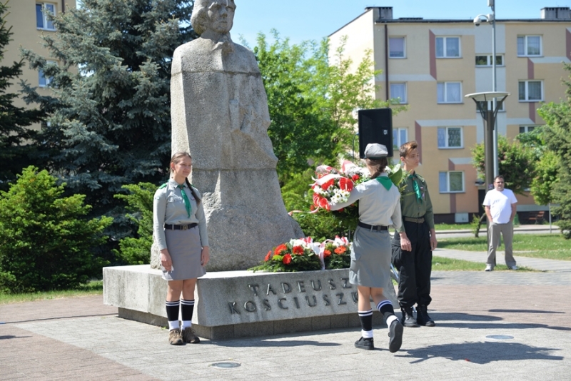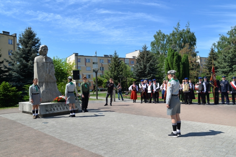 Kolejnym punktem niedzielnych wydarzeń było złożenie kwiatów pod pomnikiem Tadeusza Kościuszki w Połańcu. Pochód wyruszył na plac spod budynku Centrum w akompaniamencie zespołu Wierna Rzeka. Majowy wiatr niewątpliwie niósł pięknie wygrywane melodie w najdalsze zakamarki naszej Gminy. Tam poszczególne delegacje złożyły wiązanki kwiatów ku czci Bohatera Narodowego. Gromadząc się w tym miejscu co roku dajemy symbol pamięci o naszej pięknej historii. Hołd Wielkiemu Naczelnikowi i jego towarzyszom oddały następujące delegacje: