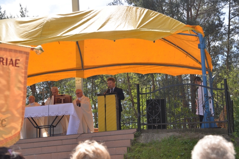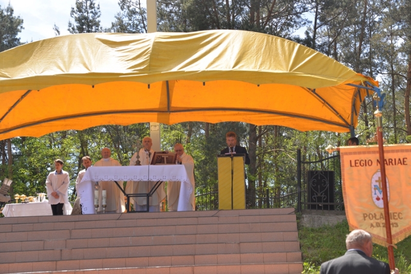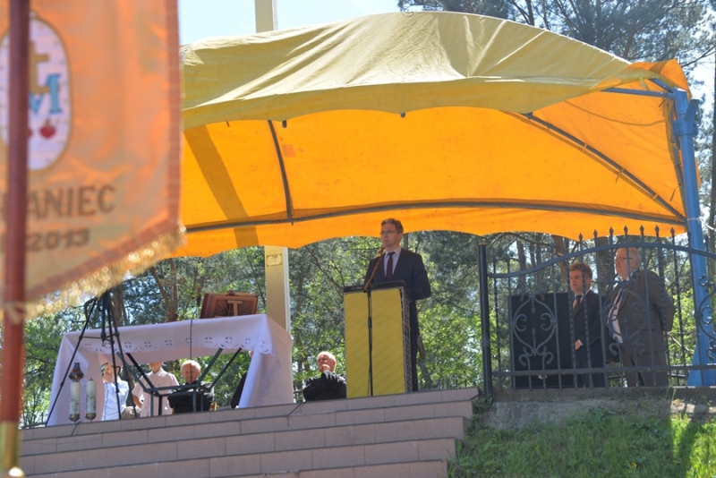 Na tym jednak nie koniec niedzielnych wydarzeń bowiem o 12.00 wszyscy chętni mogli udać się na Kopiec Kościuszki i uczestniczyć w Mszy Świętej oraz późniejszych występach. W tym roku obecnością na mszy świętej zaszczycił nas między innymi Marszałek województwa świętokrzyskiego Adam Jarubas oraz Czesław Siekierski poseł do Parlamentu Europejskiego ziemi świętokrzyskiej i małopolskiej. Obaj Panowie w krótkich wystąpieniach po Mszy Świętej wyrazili swoje zadowolenie z możliwości uczestniczenia w uroczystościach połanieckich i życzyli wszystkim zgromadzonym udanego dalszego świętowania.