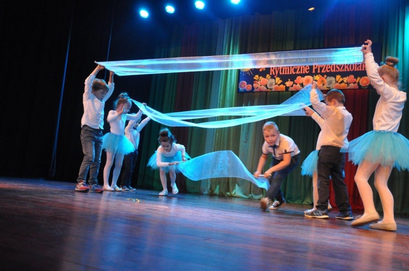 Taniec odgrywa ważną rolę w życiu dziecka – kształtuje poczucie rytmu, uwrażliwia na muzykę, wpływa na wszechstronny rozwój osobowości, rozwija uczucia i wyobraźnię, ale przede wszystkim dostarcza dużo radości i piękna. Przekonaliśmy się o tym w dniu 6 czerwca 2018 r. podczas VI Przeglądu Tanecznych Zespołów Przedszkolnych „Rytmiczne Przedszkolaki", którego organizatorem było Przedszkole Publiczne w Połańcu i Centrum Kultury i Sztuki w Połańcu. Tegorocznemu spotkaniu przyświecał szlachetny cel – ogromna chęć niesienia pomocy chorej Monice, byłej wychowance naszego przedszkola. Podczas występów zbierane były do puszek pieniążki, które zasiliły konto Fundacji Dzieciom „Zdążyć z pomocą”. Akcję dla Moniki nadal prowadzimy a łączna kwota zebrana w tym dniu wyniosła 691 zł. Darczyńcom serdecznie dziękujemy.