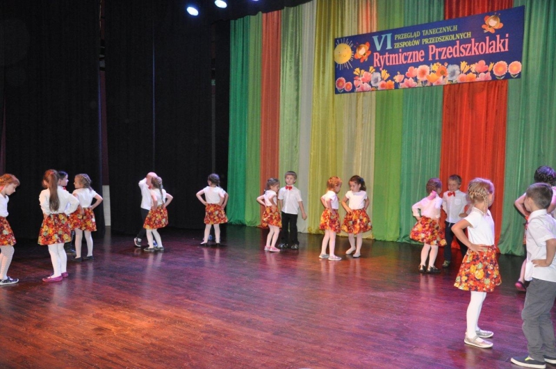 Jako pierwsza wystąpiła grupa „Elfy” z Przedszkola Publicznego w Połańcu Filia Nr 1 prezentując widowisko ruchowo - taneczne „Przedszkolny rock and roll” przygotowany pod kierunkiem Pań: Eweliny Sałaty, Elżbiety Prajs. Grupa „Muchomorki” z Przedszkola Publicznego w Ruszczy zaprezentowała taniec murzyński „Dżungla” przygotowany przez Panią Annę Kwiatkowską. Widowisko ruchowo-taneczne „Sen pozytywki” zatańczyła grupa „Motylki” z Przedszkola Publicznego w Połańcu. Dzieci zostały przygotowane pod kierunkiem Pani Edyty Dziedzic-Godlewskiej. Przedszkole Gminne im. Św. Jana Pawła II w Oleśnicy reprezentowały dwa zespoły taneczne pod kierunkiem Pani Teresy Wójcik: „Tańczące Motyle” zatańczyły walc z filmu „Trędowata”, a grupa taneczna „Elfy” zaprezentowała się w tańcu do muzyki Richarda Claydermana „Mariage D' Amour”. Taniec regionalny „Lasowiak” zatańczyły „Leśne Ludki” z Przedszkola Publicznego w Połańcu Filia nr 1. Grupę przygotowały Panie: Marlena Kwapisz i Ewa Ratusznik. Widowisko ruchowo taneczne „Hafanana” zaprezentowała grupa integracyjna „Skrzaty” z Przedszkola Publicznego w Połańcu, małych artystów przygotowały Panie: Jolanta Cebula, Anita Wróbel, Anna Kaniszewska. Kolejny zespół, który wystąpił na scenie to grupa „Biedronki” z Samorządowego Przedszkola w Pacanowie. Widowisko ruchowo-taneczne „Letni wiatr” przygotowały Panie: Joanna Biała-Wilk i Ewa Kapusta. Taniec towarzyski „Tańczymy disco polo” zatańczyły dzieci zgrupy „Koniczynki” z Przedszkola Publicznego w Połańcu Filia Nr 2 przygotowane pod kierunkiem Pani Mirosławy Gad. Grupa „Kotki” z Przedszkola Publicznego w Połańcu Filia Nr 1 zaprezentowałataniec nowoczesny „Summer time”. Dzieci przygotowały Panie: Dorota Rzepka oraz Barbara Stachura. Grupa integracyjna „Smerfy” z Przedszkola Publicznego w Połańcu zatańczyła„Taniec kowbojski”, a małych artystów przygotowały Panie: Janina Sobierajska, Monika Mikoda i Marlena Kwapisz. Na scenie pojawili się także Roztańczeni dżentelmeni i laleczki z gr. „Biedronki” z Przedszkola Publicznego w Połańcu w widowisku ruchowo-tanecznym do muzyki z filmu”Va bank” oraz utworu „Hafanana”. Grupę taneczną przygotowały Panie: Urszula Kaszuba, Halina Bieniek, Agnieszka Rogóż. Grupa „Smerfy” – z Przedszkola Publicznego w Połańcu Filia nr 1 zaprezentowała widowisko ruchowo - taneczne „Składankę taneczną po Europie” przygotowane pod kierunkiem Pań: Joanny Sałagaj i Jadwigi Dąbrowskiej.