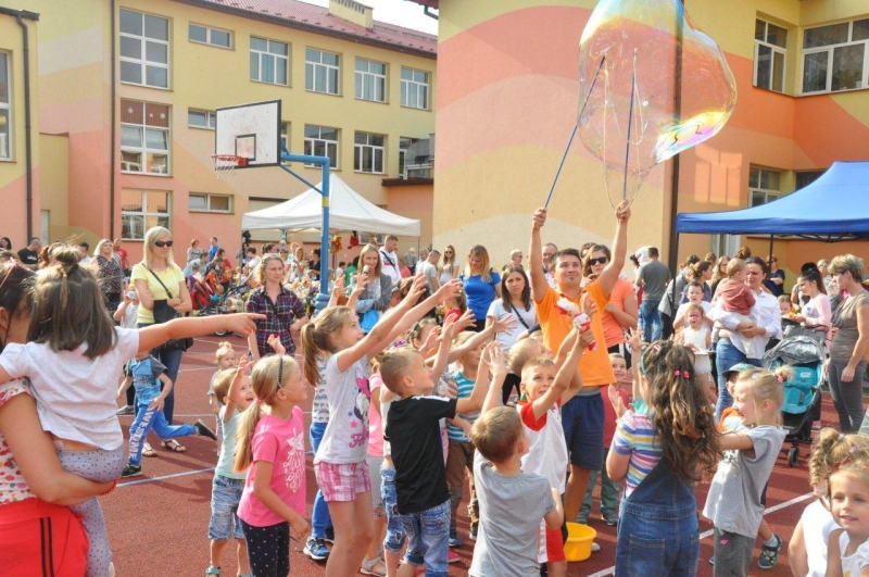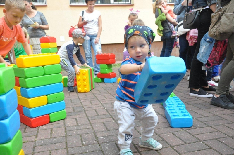 Wspaniała aura pozwoliła na przeprowadzenie licznych konkursów zarówno dla dzieci jak i rodziców. Nawet odbyły się konkurencje rodzice kontra pracownicy przedszkola i żłobka. Bardzo duże zainteresowanie wzbudził pokaz baniek mydlanych, które fruwały nad boiskiem mieniąc się wszystkimi kolorami tęczy. Z dużym zaciekawieniem dzieci brały udział zabawach z piłkami, zagadkami itp.