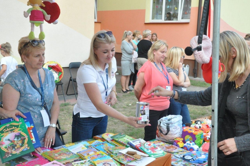 W sposób szczególny wspieraliśmy chorą Monikę, dlatego w tym celu utworzyliśmy na festynie „bazarek” z zabawkami, maskotkami, książkami, grami, puzzlami, które można było zakupić w dogodnej cenie. Wszystkie wyeksponowane przedmioty były wynikiem ogromnego zaangażowania rodziców, którzy chętnie włączyli się w akcje i przynosili rzeczy – za co pięknie dziękujemy!