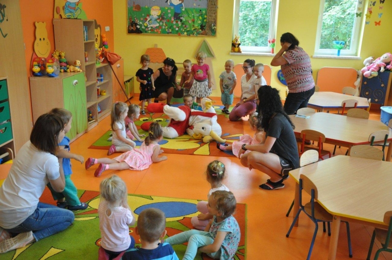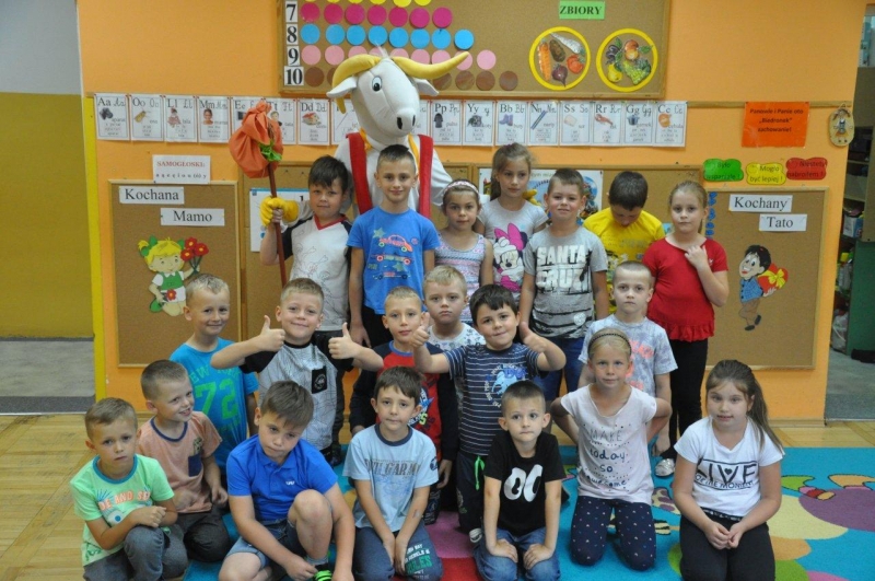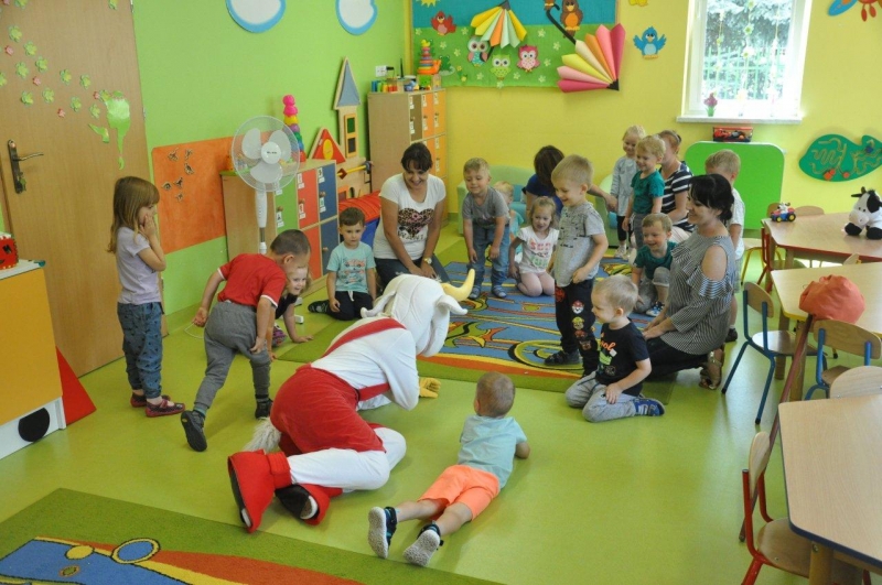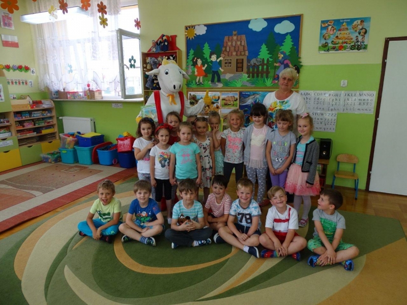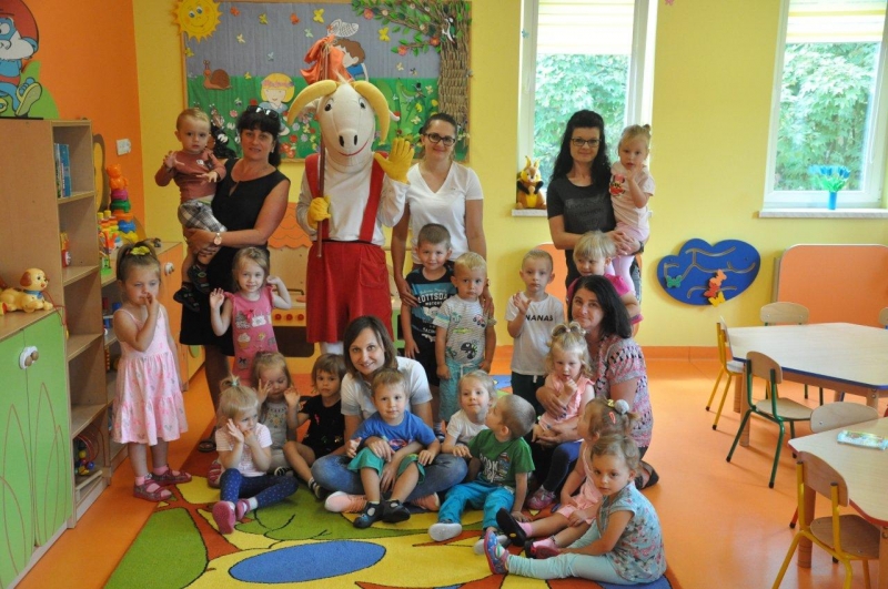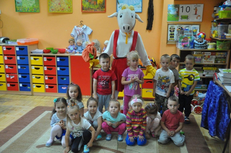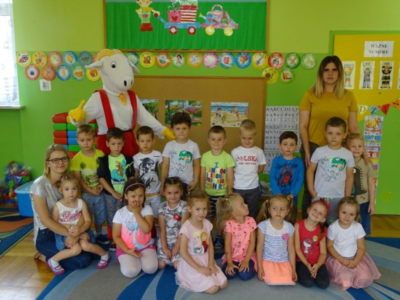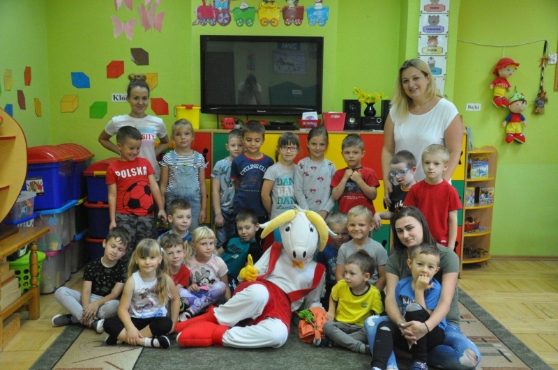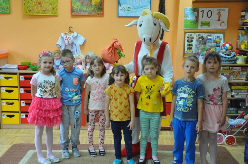 Na zakończenie spotkania każda grupa zapozowała do pamiątkowego zdjęcia z Koziołkiem. Wszystkie dzieci świetnie się bawiły goszcząc naszego „przyjaciela”. Radości i uściskom nie było końca!