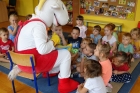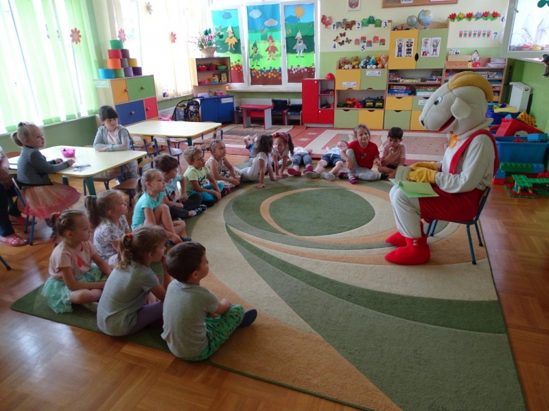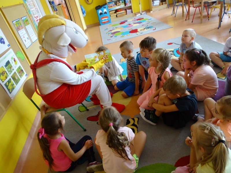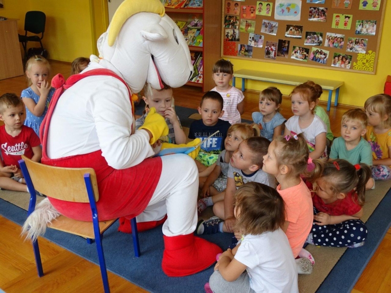Głównym celem wizyty Matołka było propagowanie czytelnictwa. Wszyscy wiemy, że nie do przecenienia jest rola, jaką w wychowaniu i rozwoju człowieka i to już od najmłodszych lat, odgrywa kontakt z książką, dlatego sympatyczny Koziołek bardzo chętnie czytał bajki we wszystkich grupach. Radości było co nie miara! A głośnego: „MEE, mee!” jeszcze więcej. Nasz gość zwrócił uwagę dzieci na to, dlaczego warto czytać. Bo przecież, czytanie dzieciom rozbudza w nich ciekawość świata i pomaga zrozumieć siebie i innych.