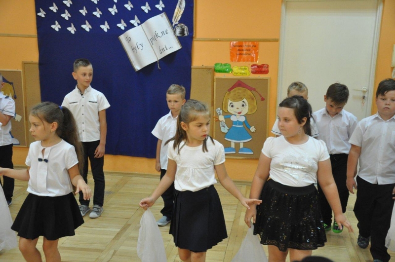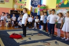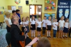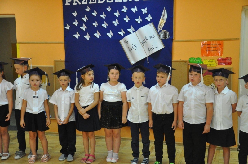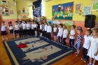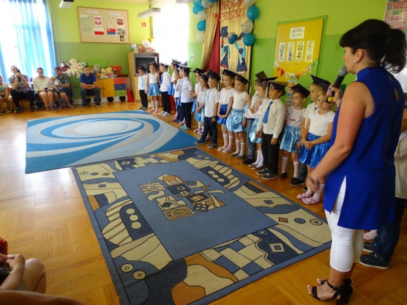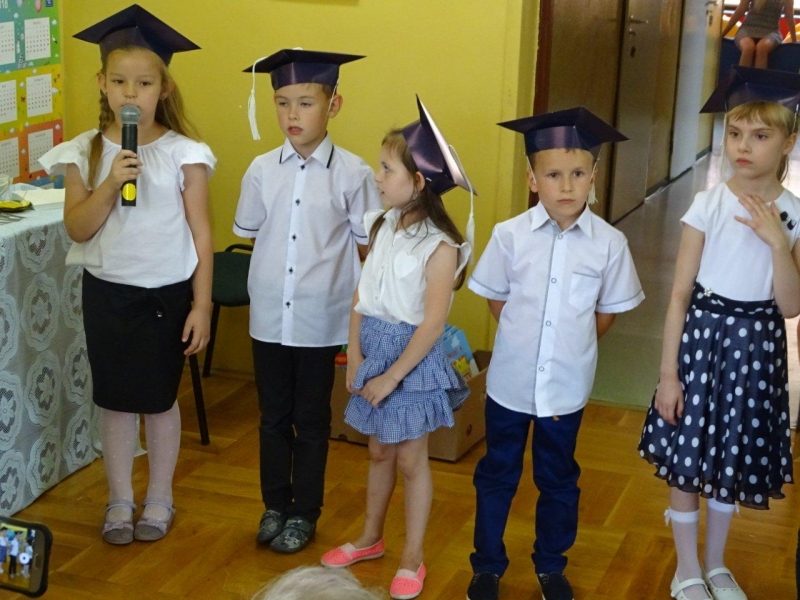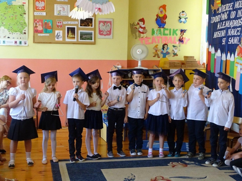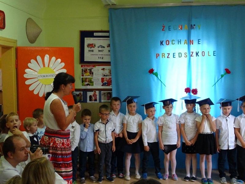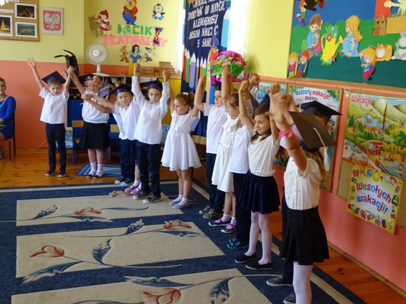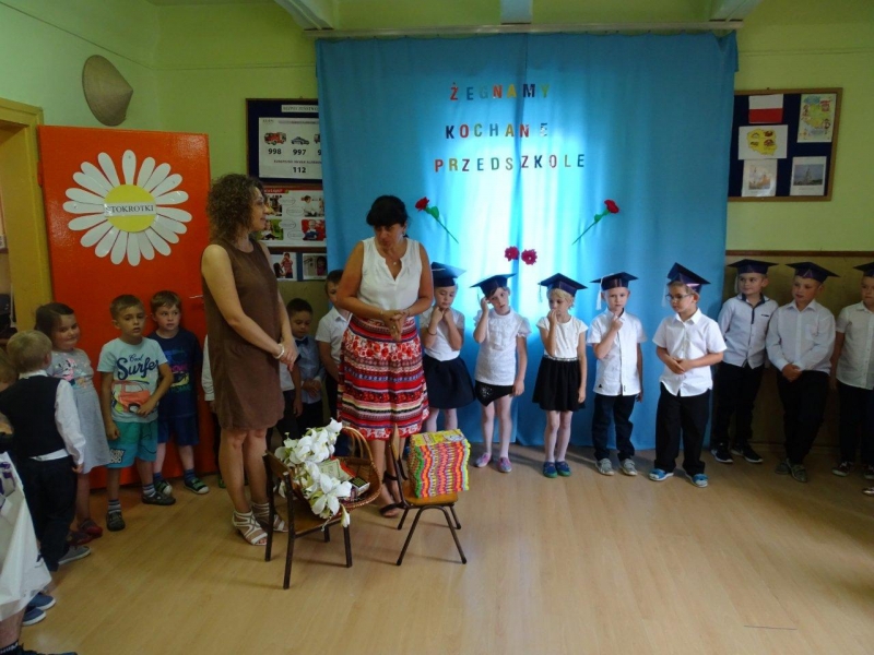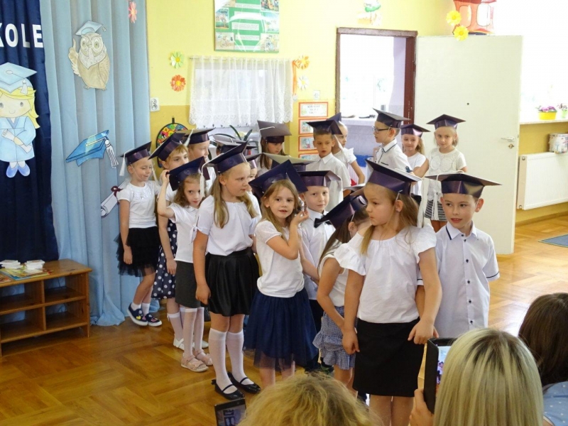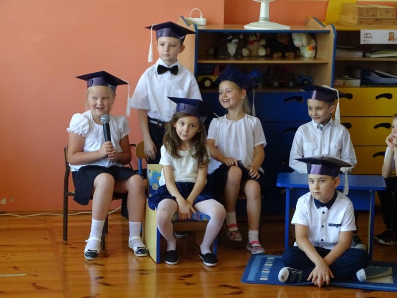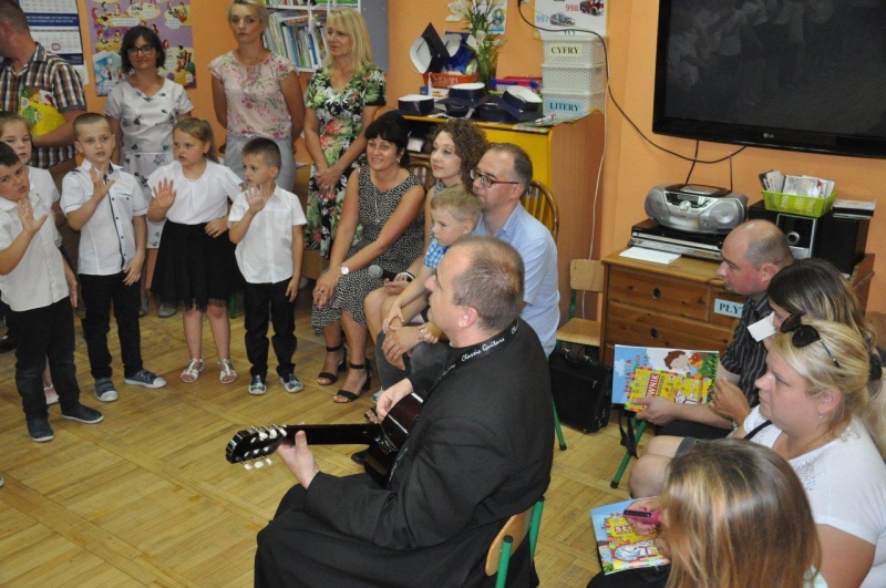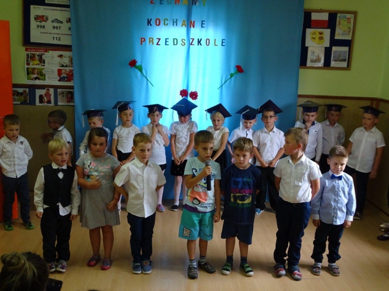 Szczególnymi gośćmi tego dnia byli Rodzice, Panie Dyrektorki, Nauczycielki oraz Ksiądz Wojtek. Programy artystyczne rozpoczęły się podniosłym polonezem, następnie recytując i śpiewając dzieci opowiadały o ważnych wydarzeniach z życia przedszkolnego, tęsknocie, ale i nowych zadaniach czekających ich w szkole. Dziękowały wychowawcom, dyrektorkom oraz wszystkim pracownikom przedszkola, z którymi przebywały w ciągu całego pobytu w przedszkolu. W każdej grupie odbył się też koncert piosenek religijnych przy akompaniamencie gitarowym Księdza Wojtka.