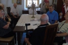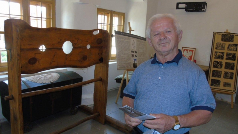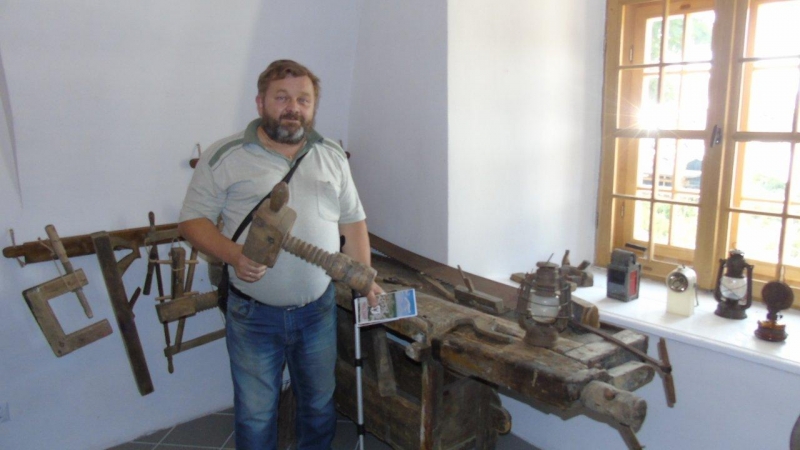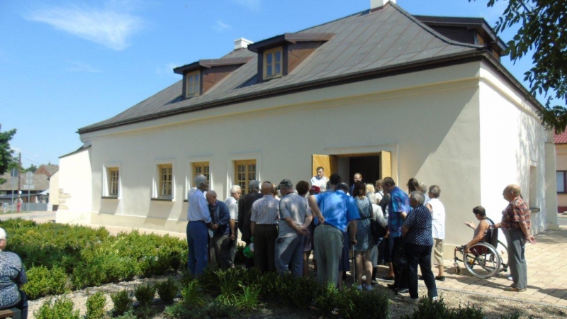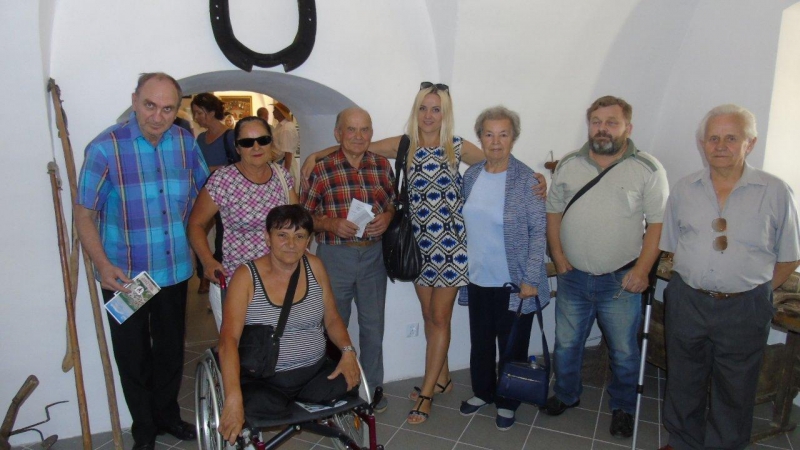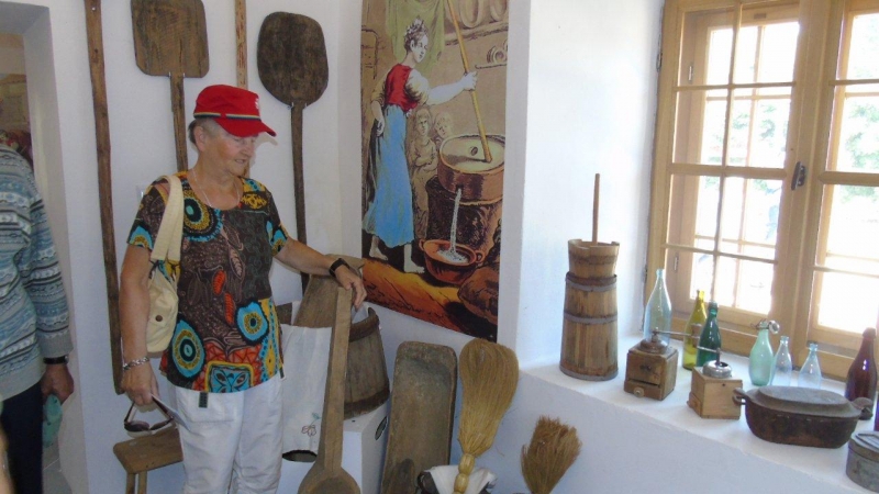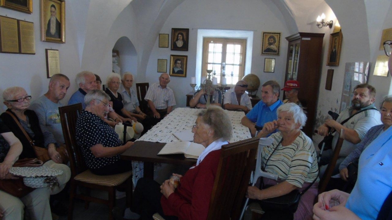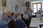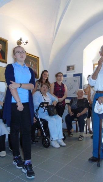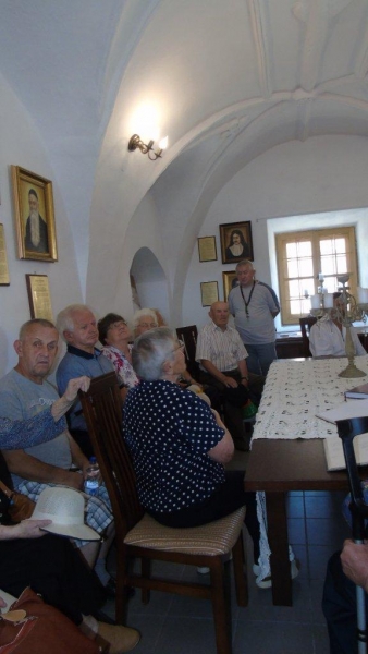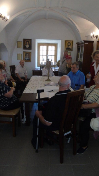 Następnie ruszyliśmy wraz z panem Dariuszem Jóźwikiem uliczką w górę aby zobaczyć Dom Ariański w Rakowie – zwany Domem Wójta. Jest to pięknie odnowiony budynek późnorenesansowy. Są w nim zgromadzone liczne dawne narządzia i inne pamiątki z przeszłości miasteczka i okolic, m.in. pozostałe po rakowskich piekarzach, szewcach i sitarzach. Podopieczni z zaciekawieniem oglądali eksponaty, wiele z nich sami jeszcze pamiętają z czasów swojej młodości.
