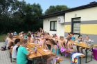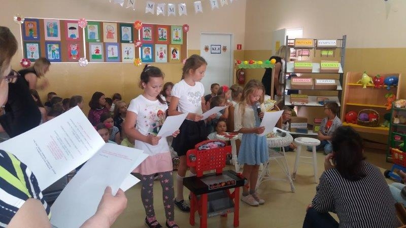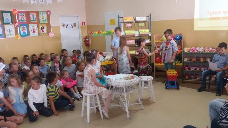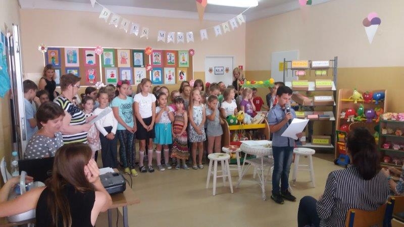 14 czerwca tradycyjnie obchodziliśmy w naszej świetlicy Dzień Rodziny pod hasłem „Wielkie otwarcie sklepu Rodzina”. Jak to bywa przy otwarciu sklepu, nie zabrakło licznych promocji. Już na wstąpię rodzice mogli skorzystać ze stoiska promocyjnego z orzeźwiającą lemoniadą. Przy pięknie wykonanej dekoracji dzieci zaprezentowały się w scenkach teatralnych, tańcu, wierszach i piosenkach. Występy dzieci zostały nagrodzone gromkimi brawami. Na twarzach naszych miłych Gości widać było ogromne wzruszenie, radość i dumę . Rodzice , oglądając prezentację multimedialną , poznali nasze działania i projekty realizowane w świetlicy w II semestrze mijającego roku szkolnego. Spotkanie z bliskimi było okazją do nagrodzenia dzieci dyplomami „Wzorowego Świetliczaka”. Na zakończenie bardzo wzruszającego spotkania dzieci wręczyły swoim Kochanym Rodzicom piękne słoiczki „Konfitury uczuć”.