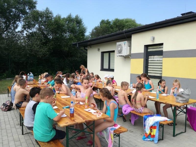 Z okazji zbliżających się wakacji została zorganizowana na stadion w Połańcu. Pod opieką ratownika, który spotkanie rozpoczął od przypomnienia regulaminu korzystania z basenu, dzieci mogły przez kilka godzin wykazać się umiejętnością pływania oraz korzystać ze wszystkich atrakcji. Dopisały świetne humory przy aktywnie spędzanym czasie. Po dwóch godzinach w wodzie zgłodnieliśmy i nadszedł czas na grilla. Wyrazy szczególnego podziękowania kierujemy do dyrektor OSiR-u Pani Karoliny Koper-Adamczak za nieodpłatne udostepnienie basenu dla dzieci oraz pomoc przy zorganizowaniu grilla. Na koniec wszyscy podekscytowani i zmęczeni, ale zadowoleni wrócili autokarem do świetlicy szkolnej.