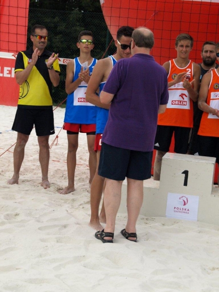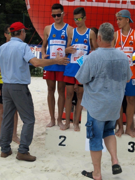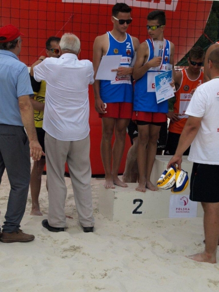 Na drodze o złoty medal stanęła naszej drużynie para Kamil Małecki, Tomasz Szymlet reprezentująca barwy klubu UKS Szamotulanin Szamotuły. Po zaciętym i emocjonującym meczu nasz drużyna przegrała z wyżej notowanym rywalem 2 : 1, zdobywając tym samym srebrne medale i tytuł v-ce Mistrzów Polski. Podczas ceremonii dekoracji nasi chłopcy zostali dodatkowo wyróżnieni nagrodami indywidualnymi. Z pośród czterech nagród indywidualnym naszym chłopcom wręczono dwie !!! Tytuł „najlepszego debiutanta” Wojtek Nowak, a „najlepszego atakującego” Bartek Roguz. Chciałem podziękować rodzicom chłopców. Podczas przygotowań i zawodów wspierali i kibicowali nam rodzice oraz rodzina Bartka i Wojtka, którzy podczas dekoracji nie kryli dumy ze swych pociech i wzruszenia w momencie odśpiewania Hymnu Narodowego (poleciała nie jedna łezka).