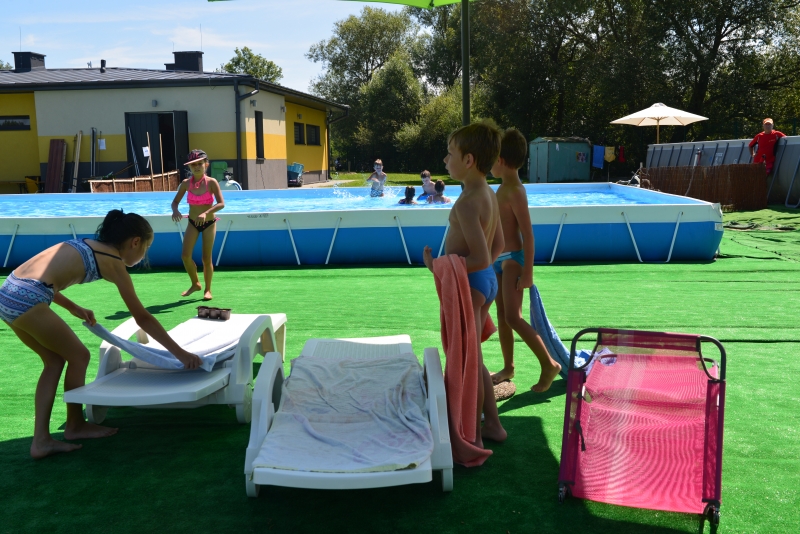 Pełnia wakacji i piękna pogoda zachęca do wypoczynku. Najlepiej oddać się błogiemu lenistwu nad wodą, gdzie można zaczerpnąć przynajmniej odrobinę ochłody. Taką możliwość swoim mieszkańcom daje Gmina Połaniec. Na terenie Stadionu Miejskiego Ośrodek Sportu i Rekreacji udostępnia dla wszystkich zainteresowanych dwa baseny zewnętrze. Baseny czynne są już od jakiegoś czasu dzięki temu z obserwacji stwierdzić można, że inicjatywa ta okazała się strzałem w dziesiątkę. Zainteresowanie możliwością spędzenia czasu w wodzie jest ogromne zarówno wśród dzieci jak i osób dorosłych. Rodzice z dziećmi, dziadkowie z wnukami, każdy spędza czas w wyśmienitym nastroju. Zorganizowanie placu wokół basenu i zagospodarowanie go między innymi w leżaki z parasolami sprawia, iż każdy może spędzić czas tak jak lubi. Dzieci mogą popluskać się w wodzie z czego chętnie korzystają, natomiast osoby dorosłe poleżeć w cieniu i po prostu odpocząć. Gwar zabawy korzystających z basenów już z daleka wzbudza chęć wskoczenia do wody. Od rana do wieczora baseny cieszą się zainteresowaniem, duże oblężenie każdego dnia jest potwierdzeniem słuszność organizowania takich inicjatyw.