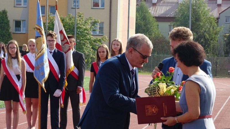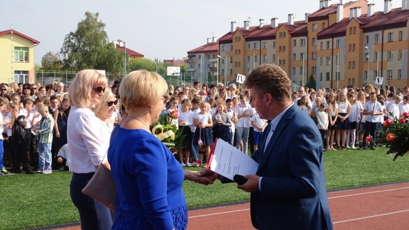 Rozpoczęcie roku szkolnego w Publicznej Szkole Podstawowej w Połańcu zainagurowało pracę nowej Dyrekcji. Na ręce Pani Dyrektor Gabrieli Zielińskiej złożono życzenia wielu sił, dobrej i efektywnej pracy. Przedstawiciele samorządu złożyli także gorące podziękowania dla ustępujących dyrektorów za wieloletni trud pracy i osiągnięcia.