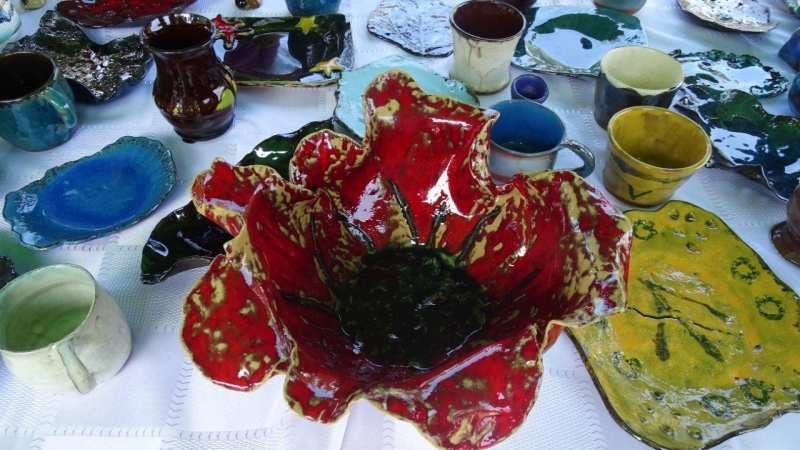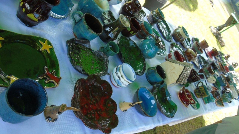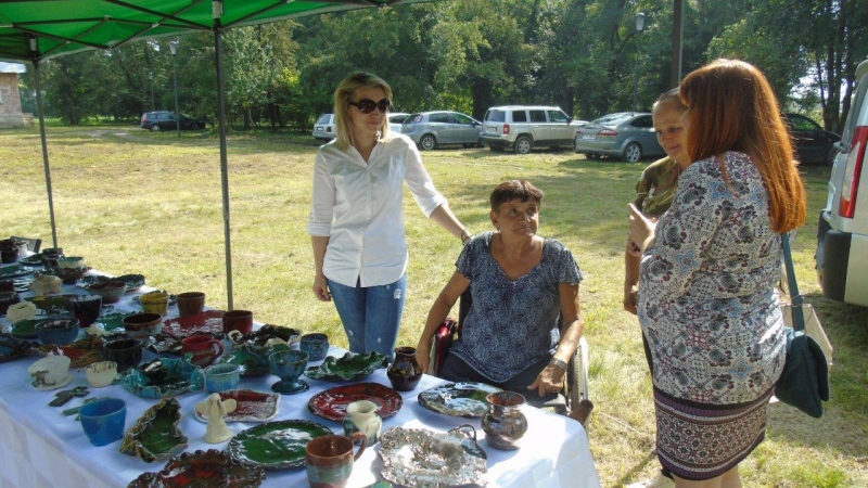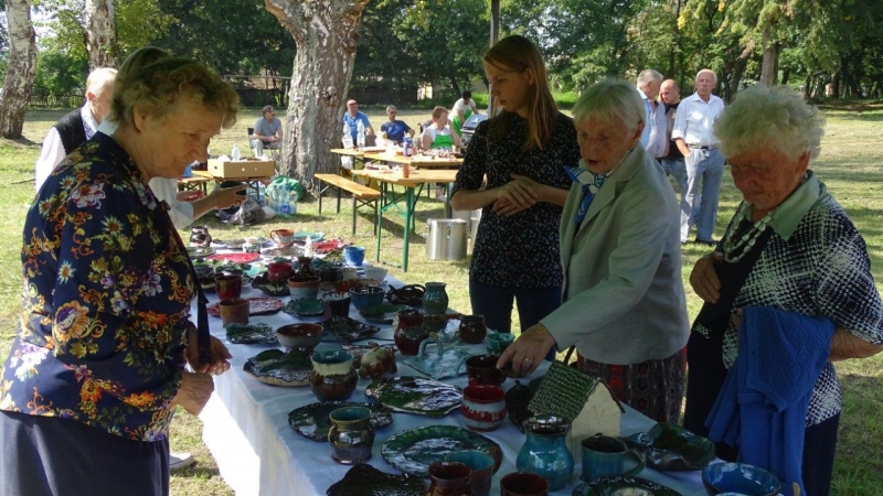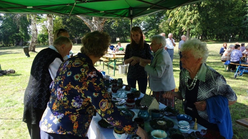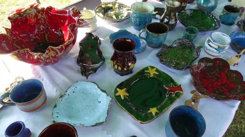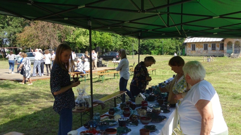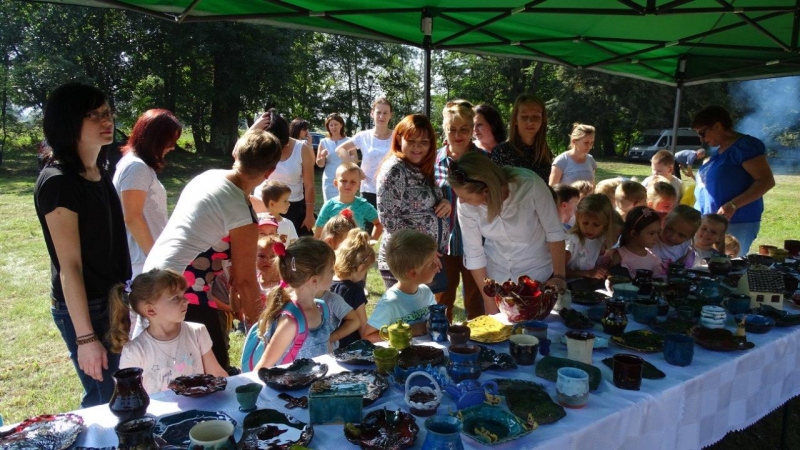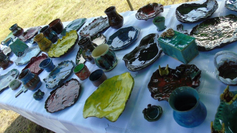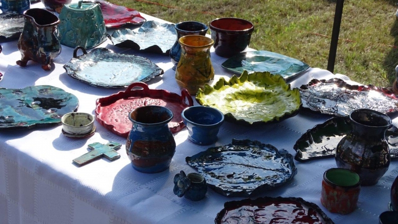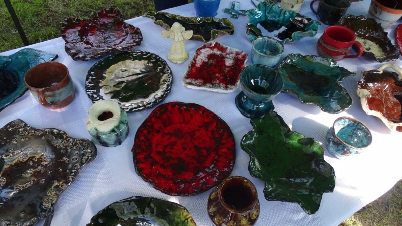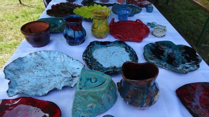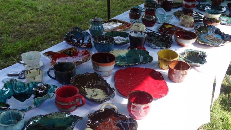 Wyroby ceramiczne zachwycały swoim pięknem i różnorodnością. Słoneczna pogoda, urokliwy park przy Dworku w Ruszczy oraz to niezwykłe historyczne miejsce sprawiły, że wystawa była wyją tkowa, a muzyka folkowa porywała wręcz do tańca.