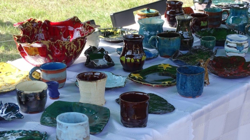 Wystawa ceramiki w Parku przy Dworku w Ruszczy