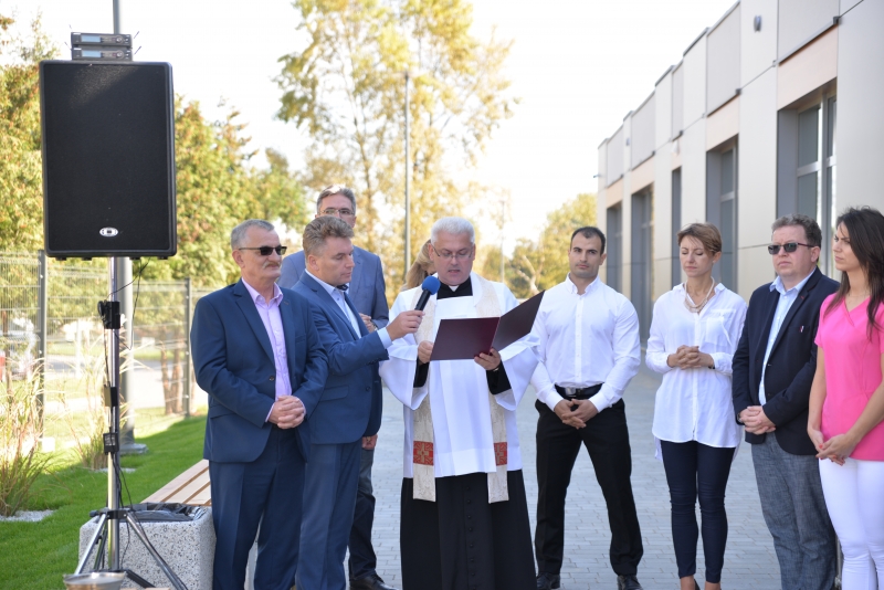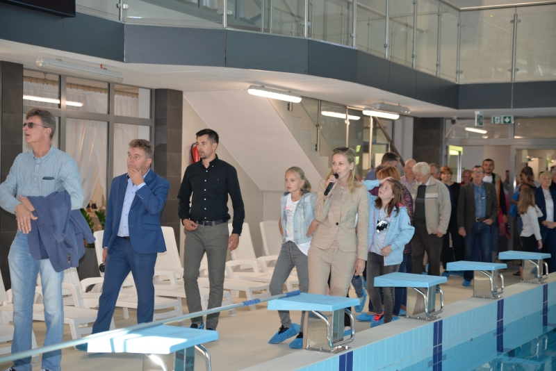 Całą uroczystość poprowadziła Dyrektor OSiR w Połańcu Pani Karolina Adamczak, która przywitała i przedstawiła przybyłych gości oraz podziękowała za wielkie zaangażowanie burmistrza oraz władz samorządowych, a także wszystkich, którzy przyczynili się do modernizacji i otwarcia kompleksu rekreacyjnego „Pływalnia Delfin”.