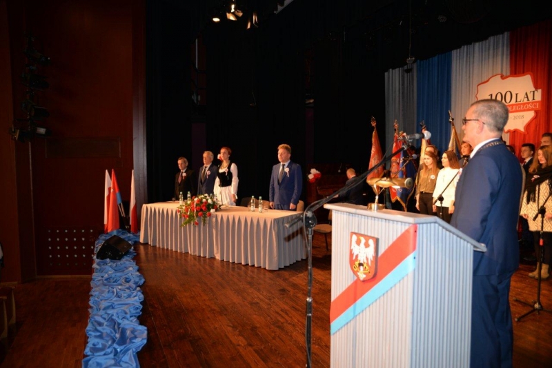 11 listopada odbyła się 100 rocznica odzyskania Niepodległości przez Polskę. W Połańcu obchody otworzyła uroczysta sesja Rady Miejskiej w Centrum Kultury i Sztuki. Już zbliżając się do budynku poczuć można było podniosłą atmosferę zaplanowanych wydarzeń. Kolorowe, piękne stroje, w które ubrani byli członkowie Towarzystwa Kościuszkowskiego już z daleka przyciągały wzrok i zachęcały do udziału w uroczystościach. Uroczystą Sesję Rady Gminy otworzył przewodniczący Rady Miejskiej - Stanisław Lolo, który powitał wszystkich zgromadzonych gości: m.in. radnych Powiatu Staszowskiego, byłego Przewodniczącego Rady Włodzimierza Ligęzę, przedstawicieli Lasów Państwowych, przedstawicieli Policji oraz Komendanta Komisariatu Policji w Połańcu – Artura Pietrasa, Honorowych Obywateli Połańca, przedstawiciela Duchowieństwa ks. Mirosława Staszczaka, Danutę Kotlarz – prezes spółdzielni mieszkaniowej, byłych samorządowców , nowo wybranych przedstawicieli Rady Miejskiej, przedstawicieli OSP Gminy Połaniec m. in., Komendanta OSP w Połańcu Mieczysława Ścisłowskiego, prezesa Zarządu Miejsko -Gminnego OSP w Połańcu - Stanisława Walczyka, prezesów, dyrektorów, kierowników zakładów i instytucji na terenie naszej Gminy, przedstawiciela Enea Połaniec - dyrektora Jerzego Króla, byłą prezes Enea Połaniec - Alfredę Switek, prezesów, dyrektorów oraz kierowników zakładów pracy i instytucji z powiatu staszowskiego, Burmistrza MiG Połaniec - Jacka Tarnowskiego, Zastępcę Burmistrza MiG Połaniec – Romana Adamczaka, Skarbnika Gminy - Małgorzatę Żugaj, Sekretarza Urzędu - Mieczysława Machulaka, kierowników i pracowników Z Urzędu Miasta i Gminy w Połańcu, kierowników i pracowników jednostek organizacyjnych Gminy, przedstawicieli jednostek pomocniczych : sołtysów i przewodniczących osiedli, radnych Rady Seniorów z przewodniczącą Anną Wolską, Młodzieżową Radę Miejską z przewodniczącym Karolem Grabowskim, przedstawicieli ludzi sportu - trenerów i sportowców, przedstawicieli Związku Nauczycielstwa Polskiego, przedstawicieli Towarzystwa Kościuszkowskiego, Kombatantów, członków klubu seniora z terenu MiG Połaniec, przedstawicieli pocztów sztandarowych, harcerzy, samorządy uczniowskie oraz młodzież szkół z naszej Gminy, mieszkańców MiG Połaniec oraz przedstawicieli mediów.