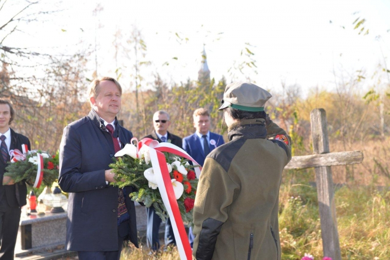Następnie głos zabrał Burmistrz Miasta i Gminy Połaniec Pan Jacek Tarnowski, który wspomniał ile Polska i Polacy przeszli zanim odzyskaliśmy wolność. Mówił o tym, iż rocznica 100 - lecia Odzyskania Niepodległości jest świętem zadumy, ale przede wszystkim radości. Na zakończenie przemówienia zaznaczył jak ważne są działania i dążenia do wolnej Polski.