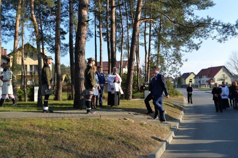 Kończąc uroczystości mszalne uczestnicy udali się procesją pod krzyż Kosynierów, gdzie złożono kwiaty i wystrzelono uroczyste salwy oddając hołd poległym.