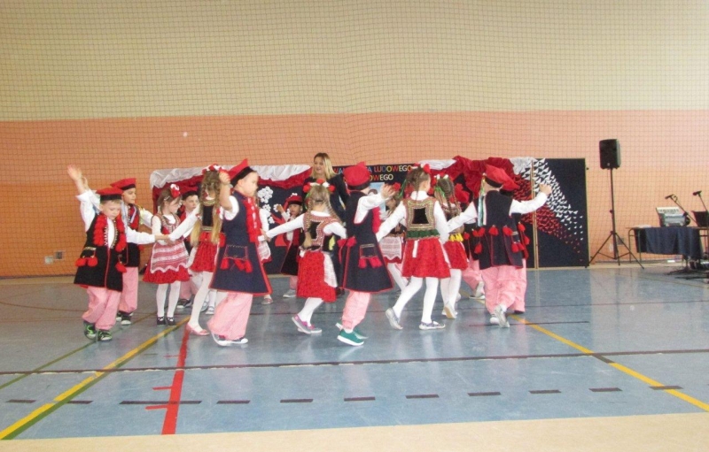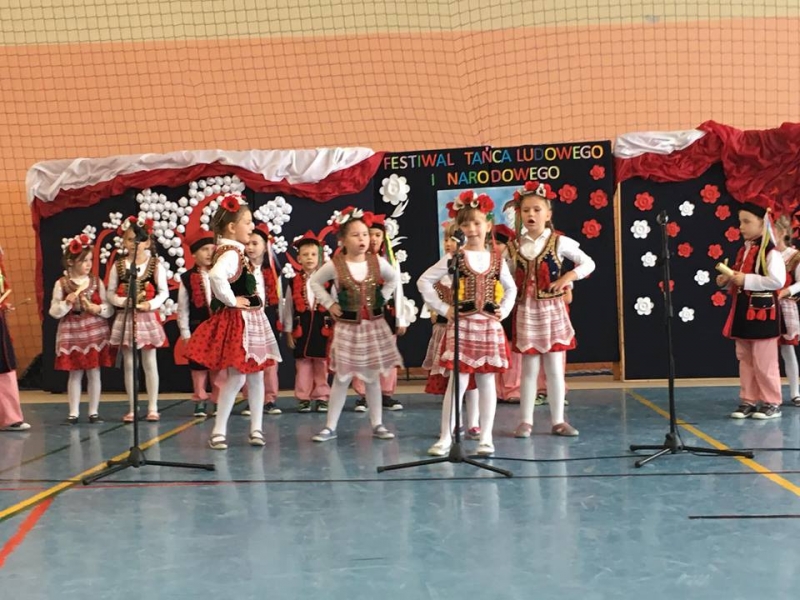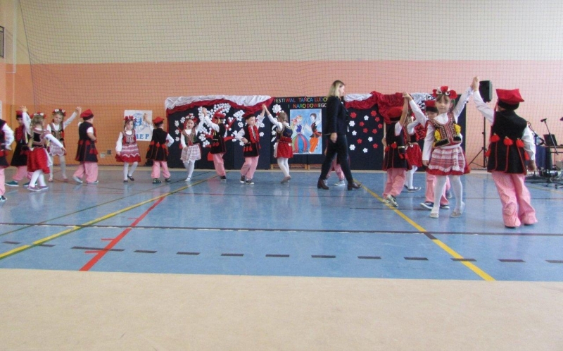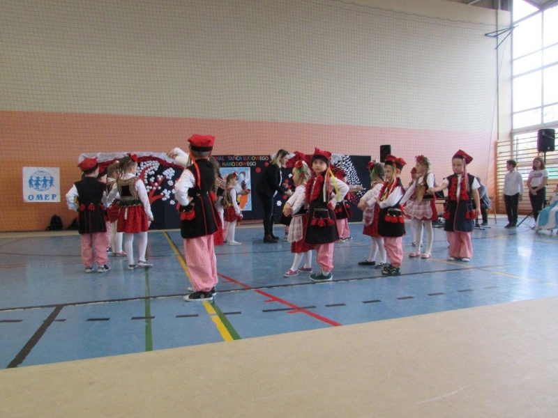 W festiwalu uczestniczyło kilkanaście zespołów przedszkolnych, które pięknie zaprezentowały swoje układy taneczne oraz przyśpiewki ludowe. Poziom występów był bardzo wysoki. Każdy zespół starał się wypaść jak najlepiej. Nasze przedszkolaki potwierdziły, że są wspaniałymi artystami i z ogromnym zaangażowaniem wystąpiły na forum przy tak licznej publiczności. Ich wysiłek i praca nauczycieli została nagrodzona. Dzieci wytańczyły i wyśpiewały trzecie miejsce za które otrzymały dla grupy piękne gry oraz indywidualne upominki.