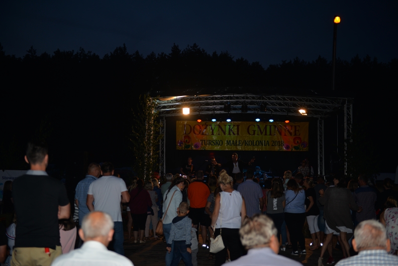 Równie radosny, folkowy nastrój towarzyszył drugiemu spotkaniu - „Dożynkom 2018” w Tursku Małym Kolonii. Dożynkowego klimatu nadały wspaniałe wieńce konkursowe ustawione wzdłuż podłogi do tańca i płody rolne: warzywa, owoce i zboża. Młodzież z Centrum Kultury i Sztuki zaprezentowała program „Świętokrzyskie granie, tańcowanie i śpiewanie”, który znakomicie podkreślił charakter imprezy skupiony wokół tradycyjnych prac rolnika i obrzędów żniwnych. Piękne, stare pieśni, i znane, polskie tańce: nostalgiczny kujawiak, elegancki polonez i skoczny oberek nadały wyjątkowości temu wydarzeniu. Podczas imprezy nie zabrakło atrakcji dla dzieci. W warsztatach "Ginące zawody i wiejskie czynności” wzięło udział 92 dzieci i młodzieży. W trakcie zajęć dzieciaki piekły podpłomyki, robiły masło ze śmietany, doiły krowę, z pomocą pługa orały skiby ziemi, strzelały z łuku, plotły z siana zwierzątka i śmieszne postacie oraz brały udział w licznych konkurencjach sprawnościowych z wykorzystaniem drewnianych narzędzi. Dodatkowo zaprzyjaźnione koła gospodyń wiejskich, jednostki z gminy Połaniec i stowarzyszenia przygotowały kiermasz folkowy, a mieszkańcy sołectwa Tursko Małe i Tursko Małe Kolonia symboliczny poczęstunek; chleb ze smalcem i ogórkiem, domowy pasztet, pierogi i swojskie wyroby. Jak na sołecką imprezę przystało do późnych godzin wieczornych rozbrzmiewała folkowa muzyka w wykonaniu znanego w Polsce zespołu InoRos grającego stylizowaną, góralską muzykę i zespołu L4 lubiącego biesiadne klimaty. A przy muzyce uczestnicy spotkania bawili się wesoło do przysłowiowego „białego rana”.