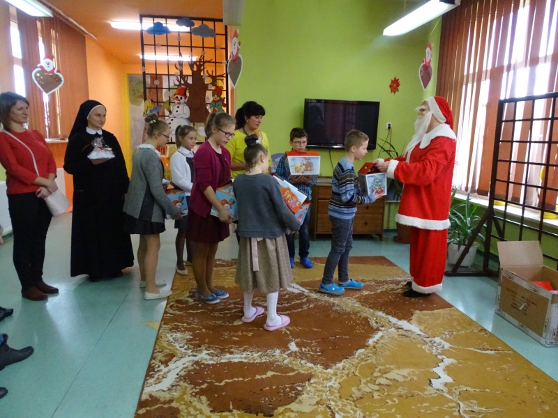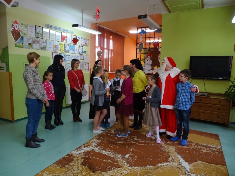 Dnia 5 grudnia 2018r. z okazji mikołajek przybyli do Połańca przedstawiciele Domu Dziecka w Pacanowie. Pobyt ich został odpowiednio zaplanowany, aby był jak najbardziej atrakcyjny. Na początek zostali zaproszeni do Biblioteki na zajęcia z tablicą interaktywną. Następnie obejrzeli bajkę w CKiSz pt.:” Kopciuszek” w wykonaniu pracowników i rodziców Przedszkola Publicznego w Połańcu. Wiele radości gościom z Pacanowa sprawiła zabawa z młodszymi koleżankami i kolegami w przedszkolu oraz spotkanie z Mikołajem, od którego dostały upominki. Rodzice dzieci ze wszystkich przedszkoli w Połańcu przekazali dla wychowanków Domu Dziecka w Pacanowie zebrane środki czystości.