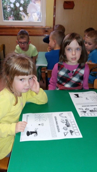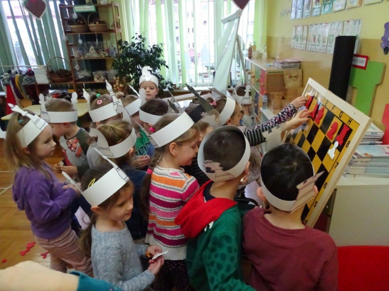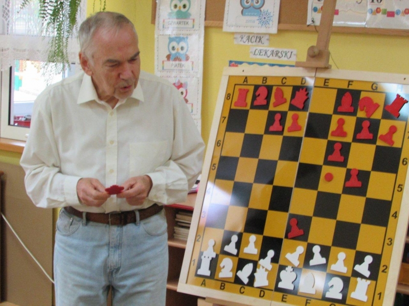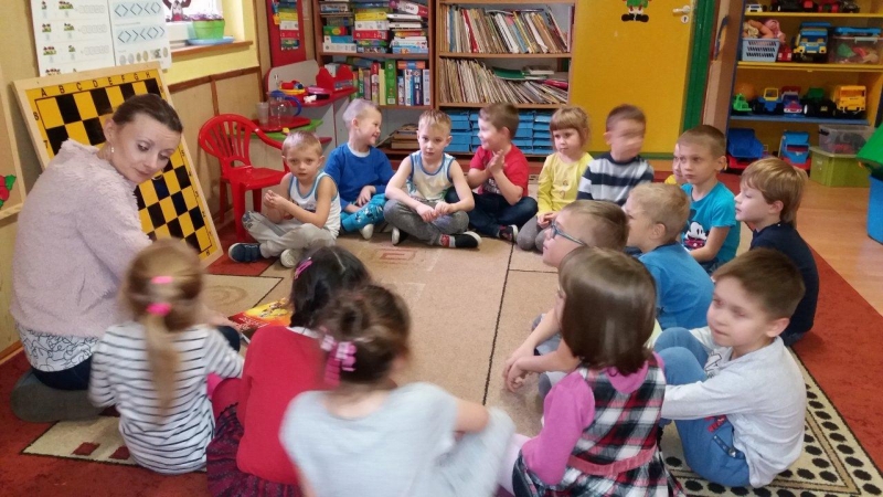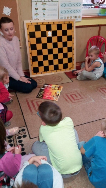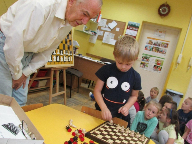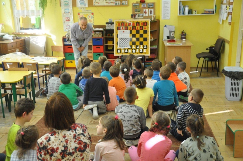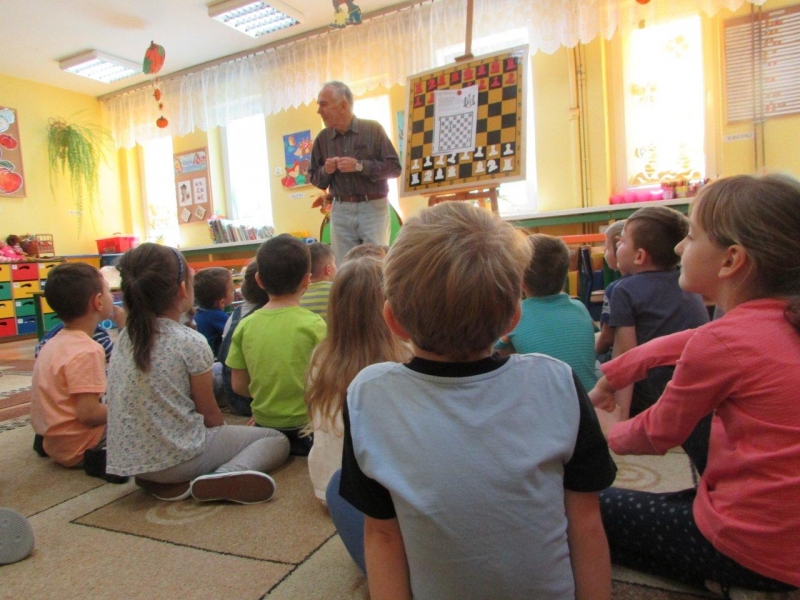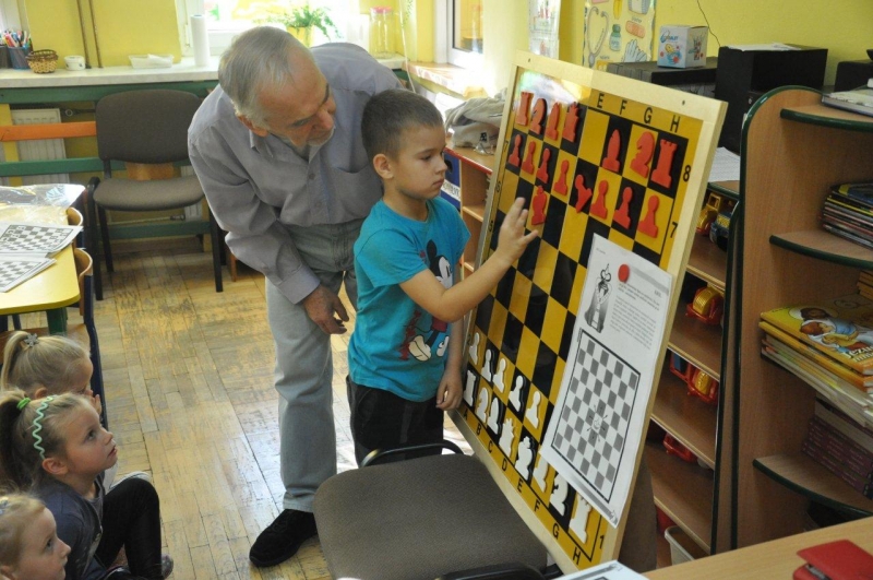 W październiku dzieci z grupy 6- letnich z Przedszkola Publicznego wraz z filiami, rozpoczęły naukę gry w szachy. Zajęcia szachowe odbywają się dzięki uprzejmości i wielkiemu zaangażowaniu pana Konstantego Mirosława Michorowskiego, pani Alicji Gujskiej-Śledź i pani Moniki Mikody, którzy poświęcają swój wolny czas wprowadzając dzieci poprzez zabawę w świat tej taktycznej i strategicznej gry. Mali szachiści słuchając pogadanek o szachach, poznają bajki i wierszyki szachowe, rozwiązują zagadki i biorą udział w zabawach o tematyce szachowej.