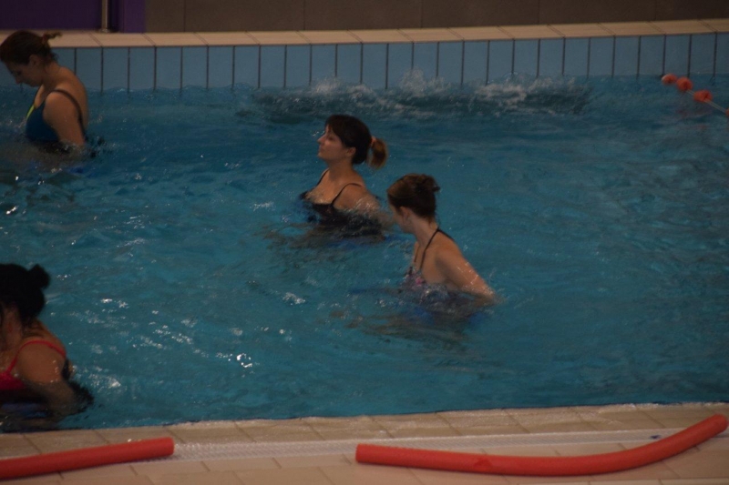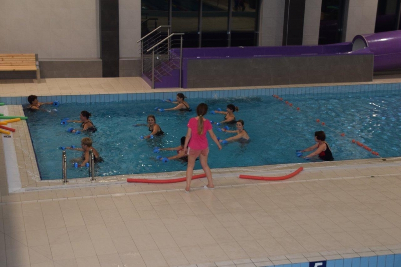 Dużym zainteresowaniem cieszy się aqua aerobic. Zajęcia odbywają się trzy razy w tygodniu – w poniedziałek, środę i piątek. Gimnastyka w wodzie to coraz popularniejsza forma aktywności fizycznej, czego doskonałym przykładem są nasi uczestnicy. Aqua aerobic jest treningiem bardzo bezpiecznym, a przy tym nie mniej efektywnym niż tradycyjna gimnastyka. Podczas wysiłku w wodzie na ciało człowieka działa tzw. wypór hydrostatyczny, który powoduje pozorną utratę ciężaru ciała, co oznacza, że ćwiczenia w wodzie są prowadzone przy pełnym odciążeniu.