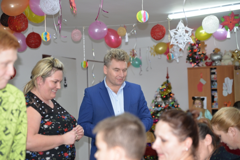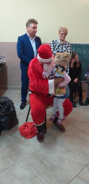 Na pewno najważniejszym punktem zabawy choinkowej i najbardziej wyczekiwanym przez dzieci była wizyta św. Mikołaja. Dzieci z niecierpliwością czekały na swoją paczkę, a spotkanie z Mikołajem było niezapomnianą chwilą. Razem z dziećmi we wspólnej zabawie udział wziął Burmistrz Miasta i Gminy Jacek Tarnowski oraz Skarbik Gminy Małgorzata Żugaj, którzy tym razem pełnili rolę pomocników św. Mikołaja. Wszystkie zabawy uznać można za udane, a dzieci „choinkę” wspominać będą z radością.