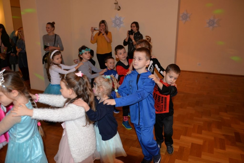 Przystrojona, oświetlona i przystosowana specjalnie dla najmłodszych balowiczów sala kawiarniana w CKiSz, zaczęła zapełniać się już około godziny 16.00. Muzyka dobrana do gustów naszych milusińskich uczestników zachęcała do tańców i wspólnych zabaw. Na początku odbywały się wesołe, spontaniczne gonitwy, które w niewielkim ale roześmianym i energicznym gronie dawała widoczną radość bawiącym się dzieciakom. Wraz z upływającym czasem i przybywającymi uczestnikami zabawa nabierała coraz większego tempa i rumieńców.